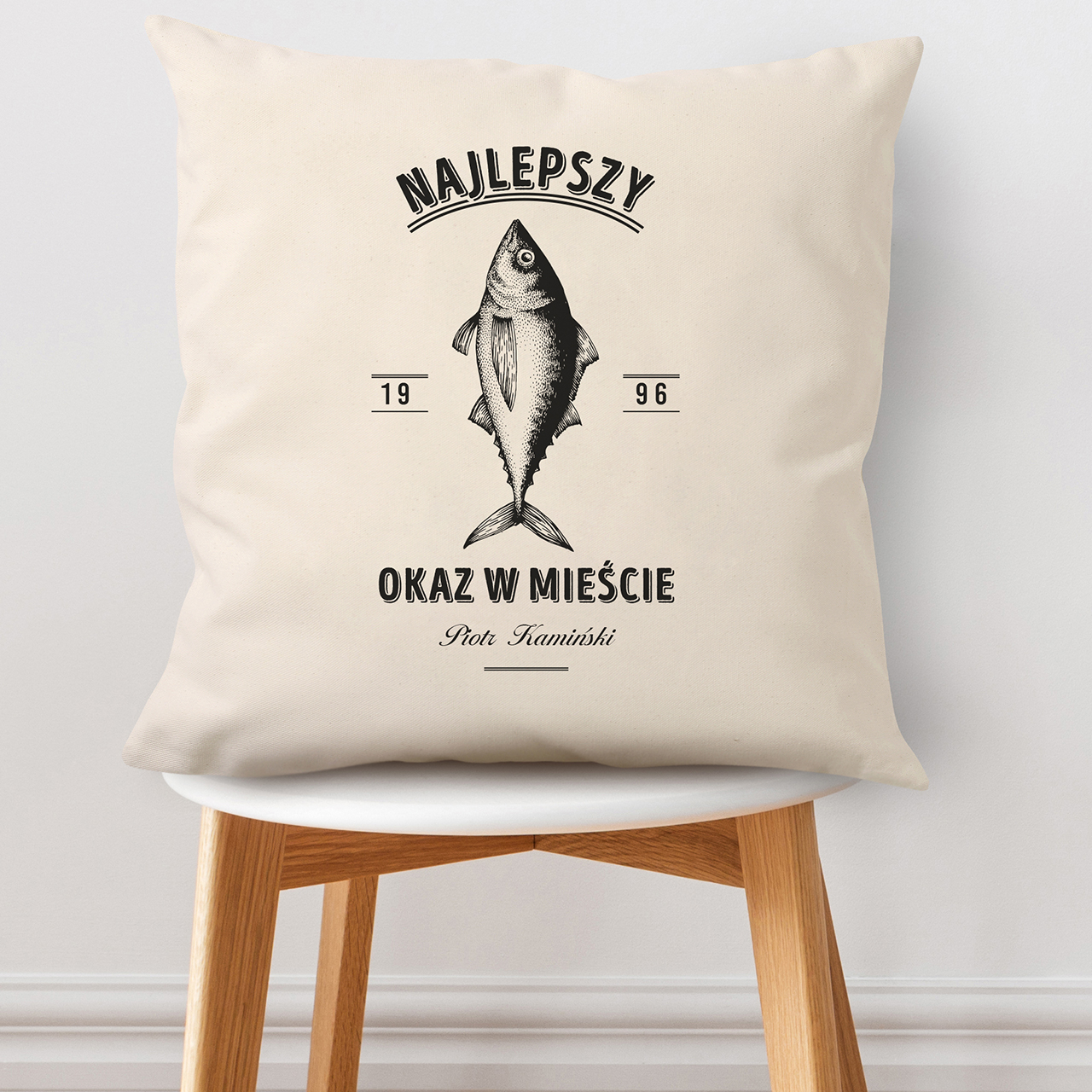 Bawełniana poduszka NAJLEPSZY OKAZ to świetna propozycja na nietypowy i zabawny prezent dla wędkarza na urodziny. Nadruk z rybą i spersonalizowany podpis sprawiają, że ta poduszka z nadrukiem wyróżnia się na tle klasycznych dekoracji. To doskonały praktyczny prezent dla faceta. Dla kogoś, kto lubi poczucie humoru i oryginalne dodatki do wnętrza.