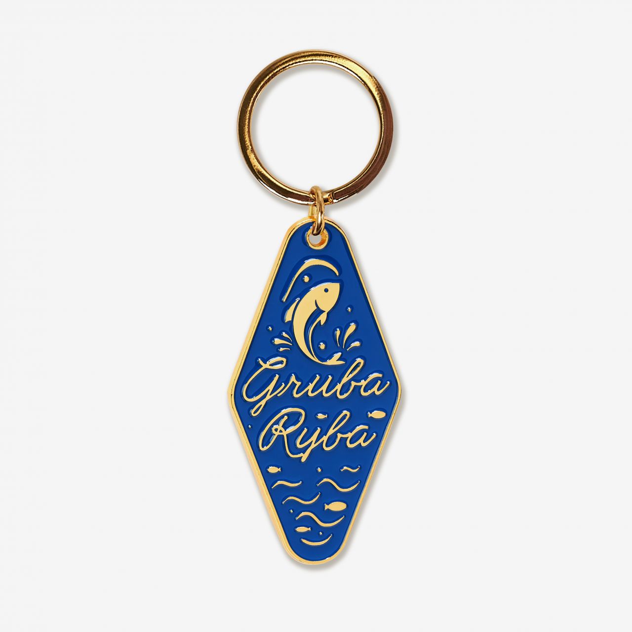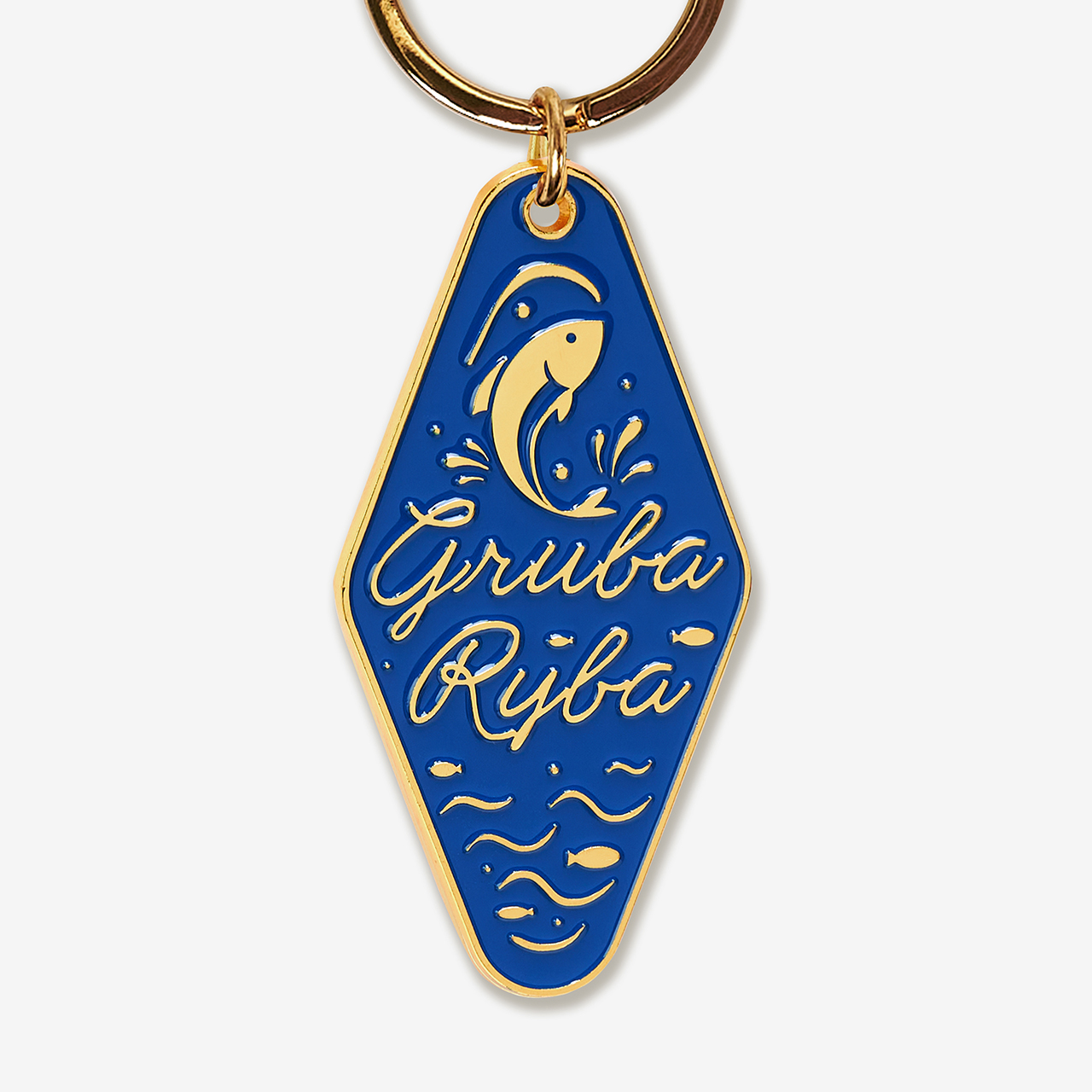 Brelok emaliowany GRUBA RYBA to humorystyczny i stylowy dodatek, który z miejsca przyciąga uwagę. Niebieski odcień i złote detale przywodzą na myśl wodne przygody, a motyw ryby z napisem dodaje całości charakteru. Świetnie sprawdzi się jako drobny prezent dla każdego, kto ma w sobie odrobinę dystansu i poczucie humoru - nie tylko dla fanów wędkarstwa!