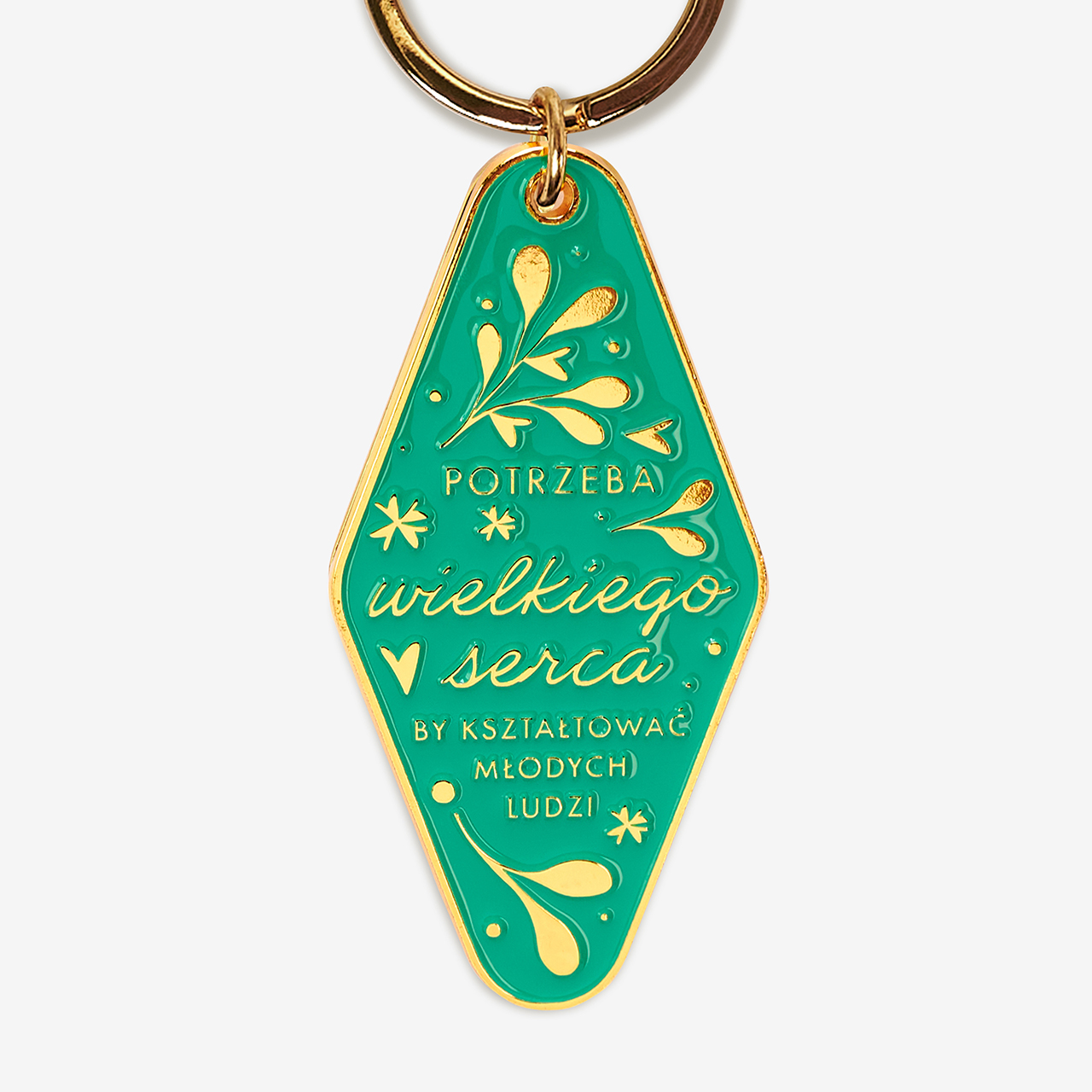Brelok WIELKIE SERCE to elegancki drobiazg, który pokazuje wdzięczność za pracę nauczyciela. Zielona baza ze złotymi akcentami sprawia, że prezent wygląda stylowo i przyciąga wzrok. Napis podkreśla, jak ważną rolę odgrywa nauczyciel w życiu młodych ludzi. To upominek na Dzień Nauczyciela pełen emocji, który z pewnością wzruszy i ucieszy obdarowaną osobę.