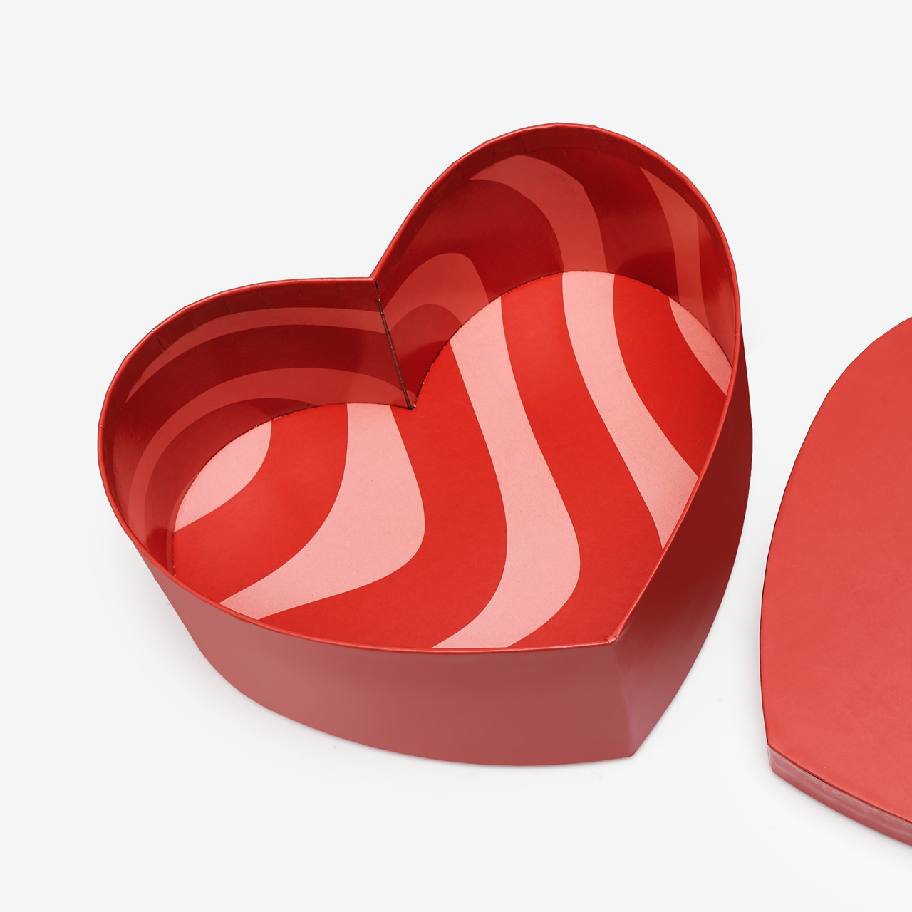 - wewnątrz różowo-czerwony wzór oraz logo na wieczku