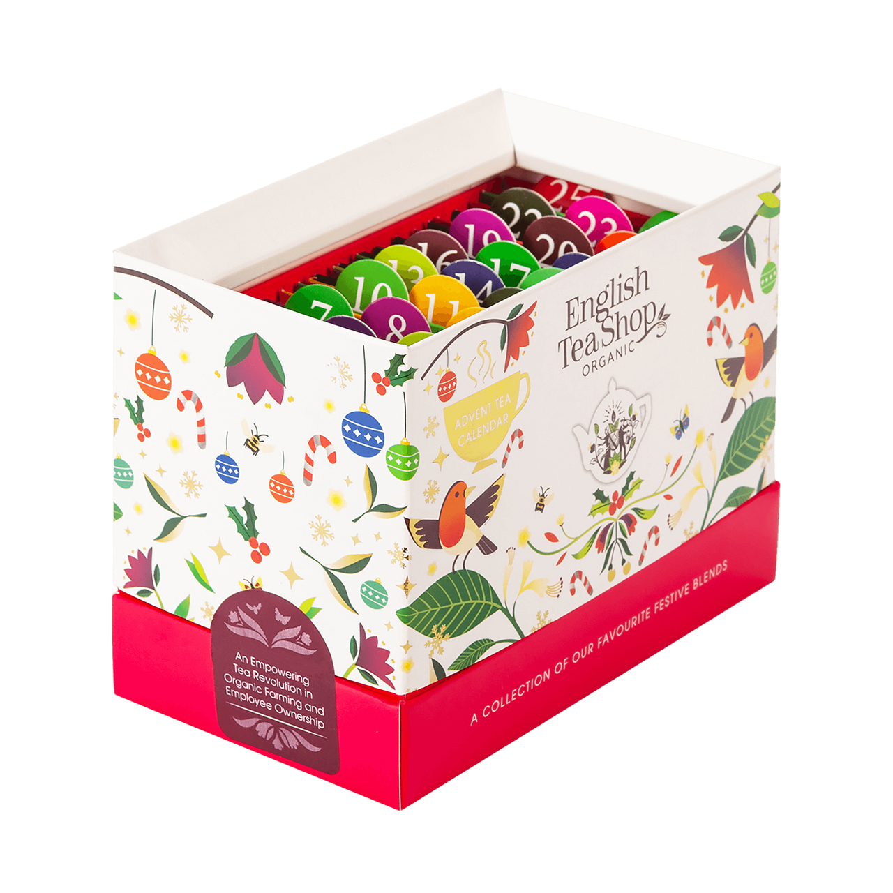 Kalendarz adwentowy HERBATY English Tea Shop to nie tylko zestaw aromatycznych naparów, ale również codzienna dawka radości i relaksu. Dzięki niemu czas oczekiwania na święta nabiera wyjątkowego smaku. Taki adwentowy kalendarz to oryginalny sposób, by w grudniu zadbać o chwilę dla siebie, spróbować nowych smaków i poczuć prawdziwą magię świąt.