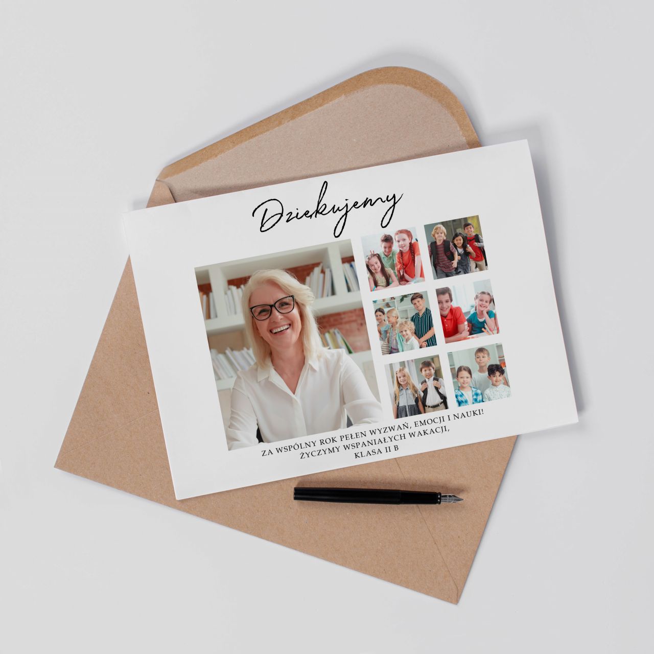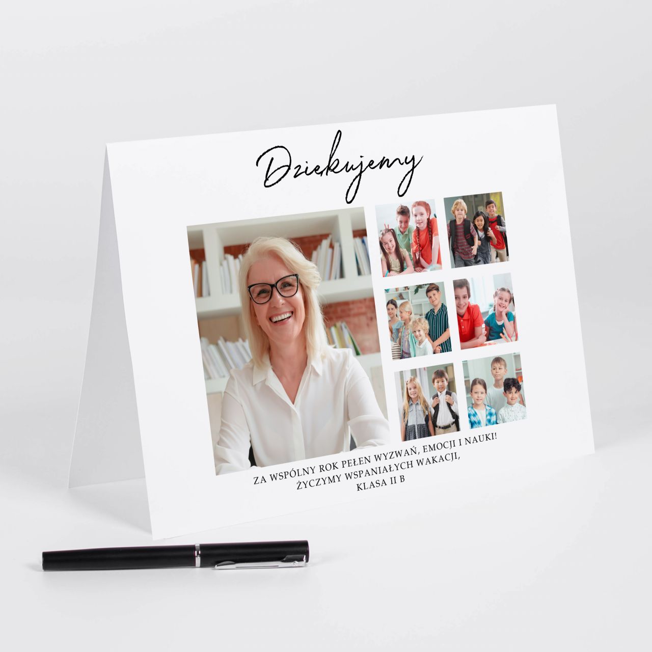 Szukasz czegoś wyjątkowego, by wyrazić wdzięczność za cały rok nauki i wspólnie spędzony czas? Kartka dla nauczyciela ze zdjęciami KOLAŻ A4 to świetny sposób, by podziękować w naprawdę osobisty sposób. Możesz umieścić ulubione zdjęcia klasy, wspomnienia z wycieczek czy ważnych chwil, tworząc wzruszający kolaż, który zostanie z nauczycielem na długo. To pamiątka, która z pewnością wywoła uśmiech i miłe wspomnienia.