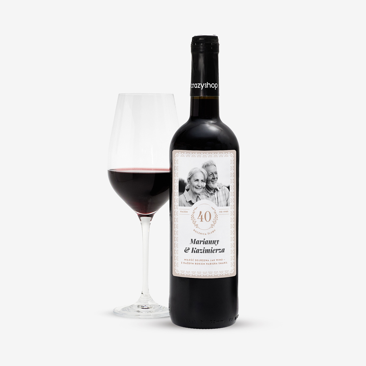 Czerwone wino z personalizowaną etykietą PREZENT NA ROCZNICĘ ŚLUBU