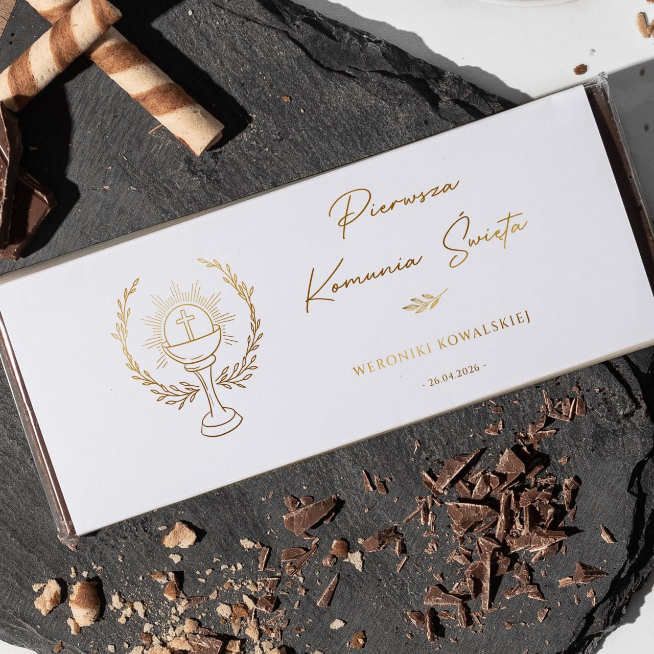 Czekolada na komunię ze złoceniem to doskonały sposób, by uczcić wyjątkowy dzień w życiu dziecka. Jej elegancki design sprawia, że staje się nie tylko smacznym upominkiem, ale też piękną pamiątką. Taki prezent na Komunię z pewnością wywoła uśmiech i zostanie zapamiętany na długo jako gest pełen klasy i słodyczy.