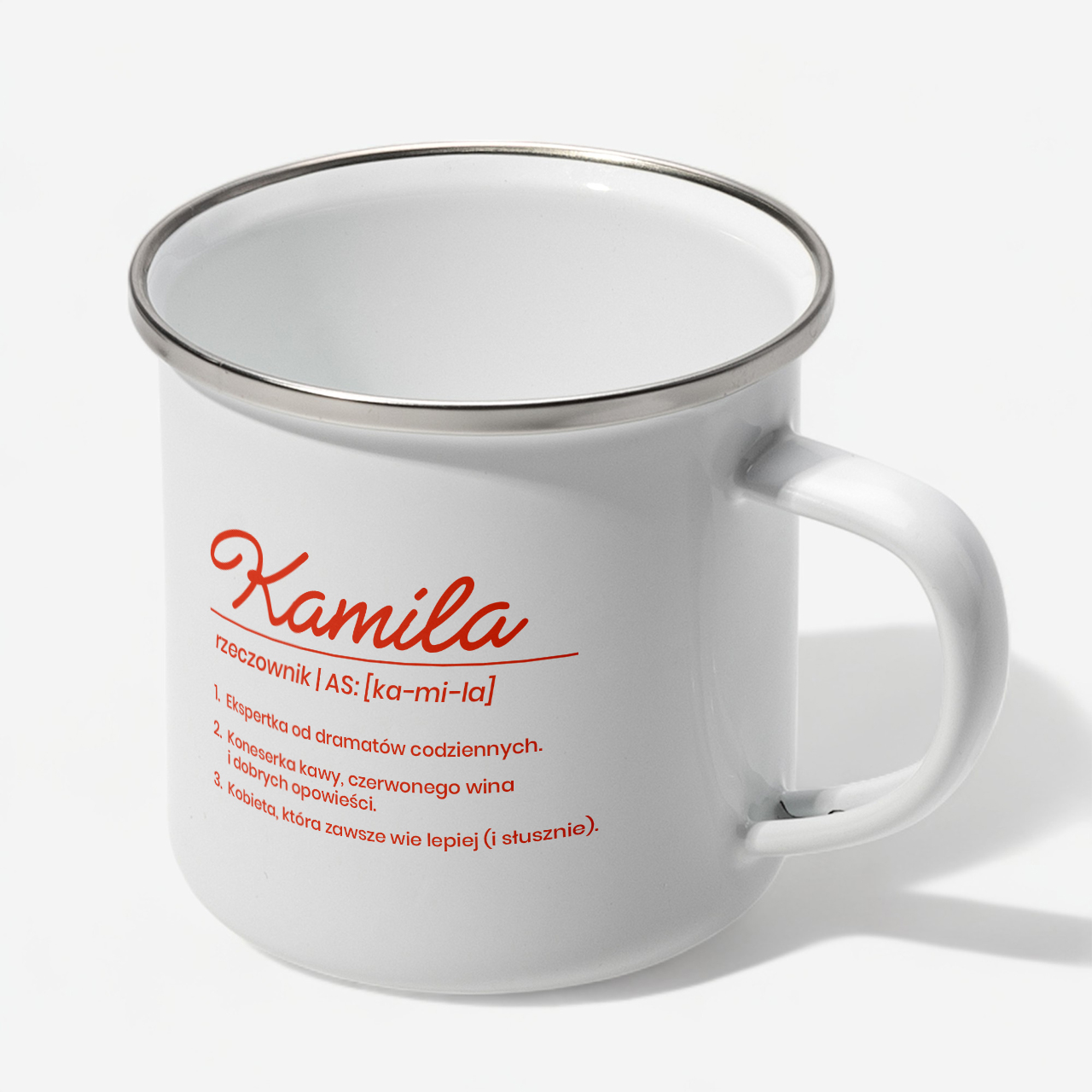 Wyjątkowy emaliowany kubek z imieniem RZECZOWNIK to idealne połączenie humoru, stylu i funkcjonalności. To naczynie, które zachwyca prostym, klasycznym designem i oryginalnym nadrukiem, dzięki któremu każdy poranek nabiera charakteru. To doskonały kubek dla osoby, która ceni indywidualność, poczucie humoru i dobrą kawę o poranku.