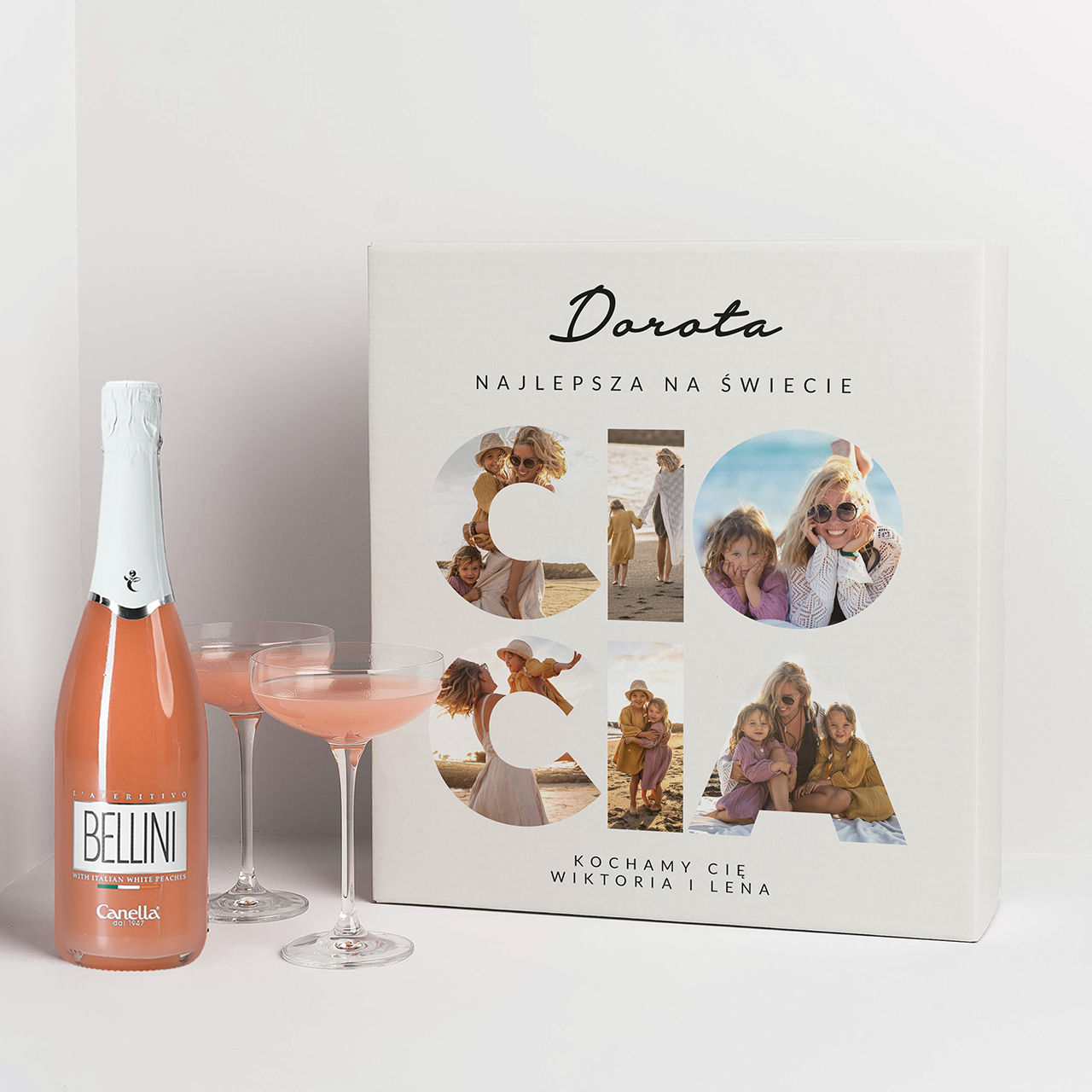 Bellini z kieliszkami NAJLEPSZA CIOCIA to propozycja, która łączy elegancję, delikatność i osobisty akcent. Doskonały jako prezent dla wyjątkowej kobiety, która lubi celebrować chwile w dobrym stylu. Idealny na wspólne świętowanie, spotkania rodzinne czy chwilę relaksu po ciężkim dniu. To zestaw prezentowy z alkoholem, który zachwyci zarówno wyglądem, jak i smakiem.