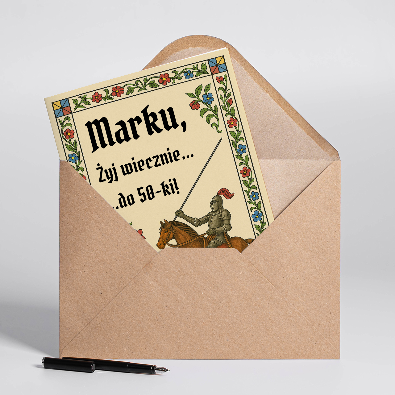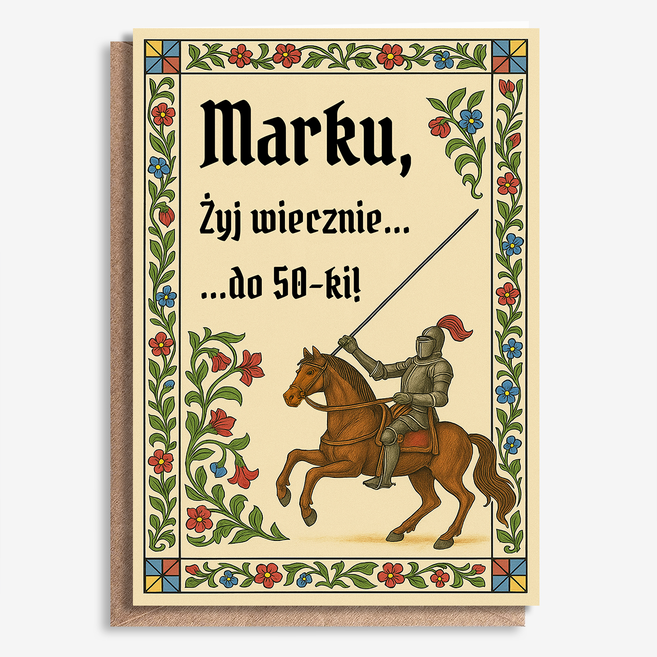 - kartka personalizowana A4 - na pierwszej stronie możliwość umieszczenia własnego tekstu, wewnątrz miejsce na treść życzeń oraz zdjęcie