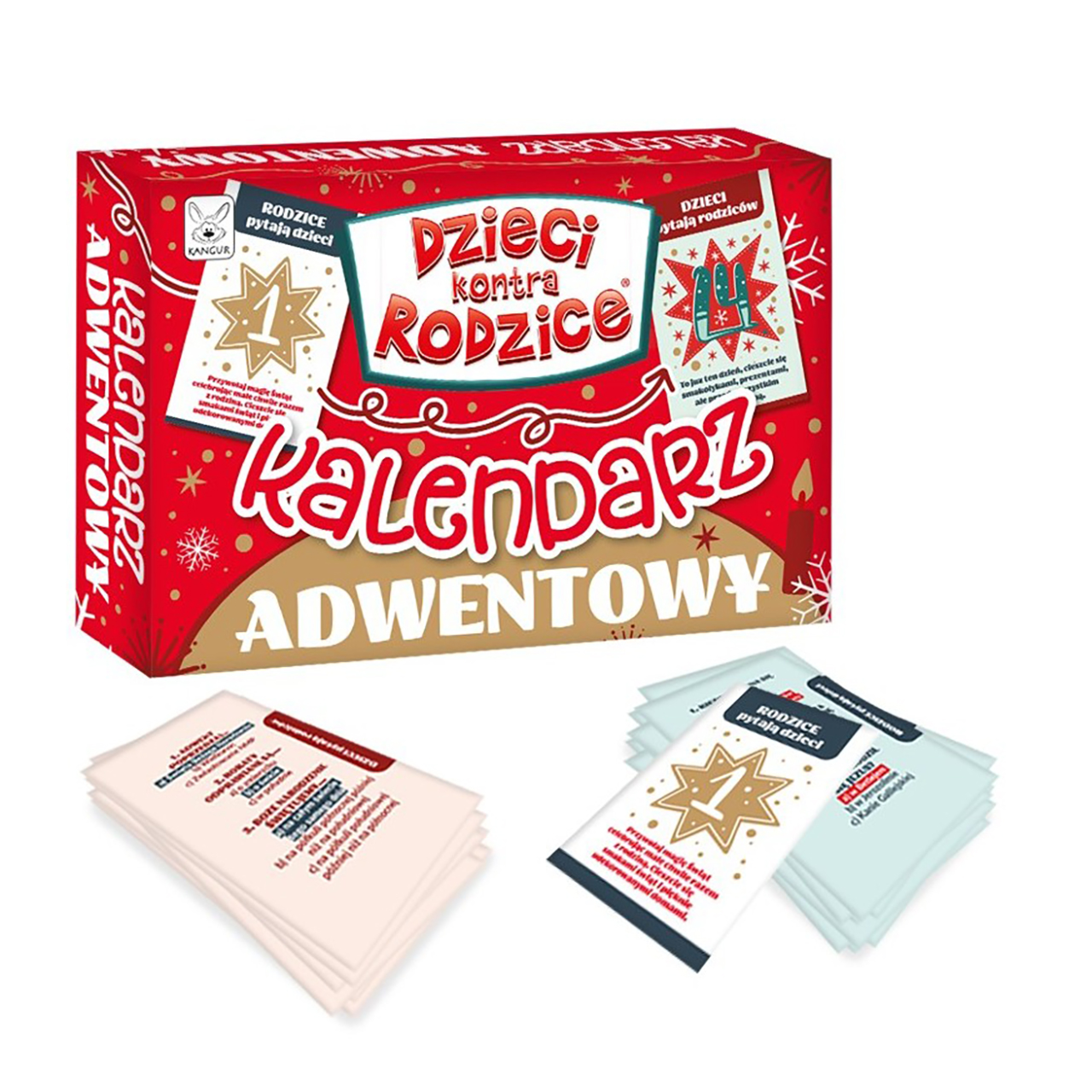 Świąteczna gra rodzinna KALENDARZ ADWENTOWY gra Dzieci Kontra Rodzice to wyjątkowy sposób na codzienną porcję radości w oczekiwaniu na święta. Produkt łączy formę klasycznego kalendarza adwentowego z zabawną grą rodzinną, w której dzieci i rodzice zadają sobie nawzajem pytania. Każde okienko kryje świąteczne wyzwania i ciekawostki, dzięki czemu wspólnie spędzony czas staje się pełen emocji i dobrej zabawy. To idealna propozycja dla rodzin, które chcą stworzyć ciepłą, świąteczną atmosferę bez nadmiaru słodyczy.