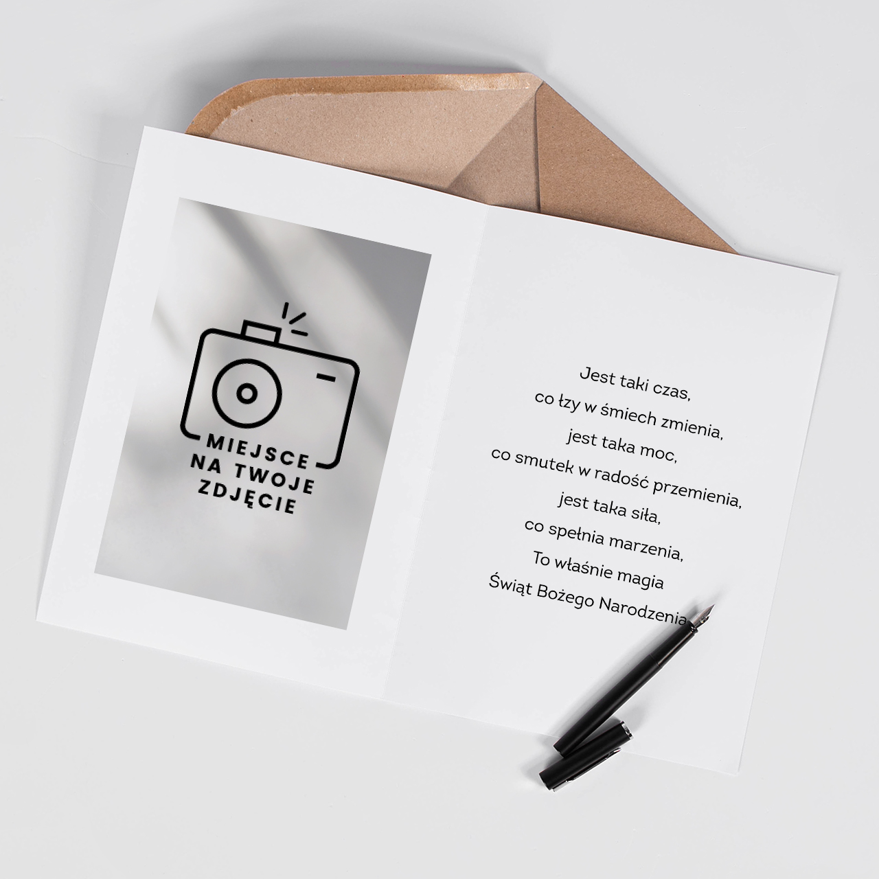 - kartka personalizowana A4 - na pierwszej stronie możliwość umieszczenia własnego tekstu, wewnątrz miejsce na treść życzeń oraz zdjęcie