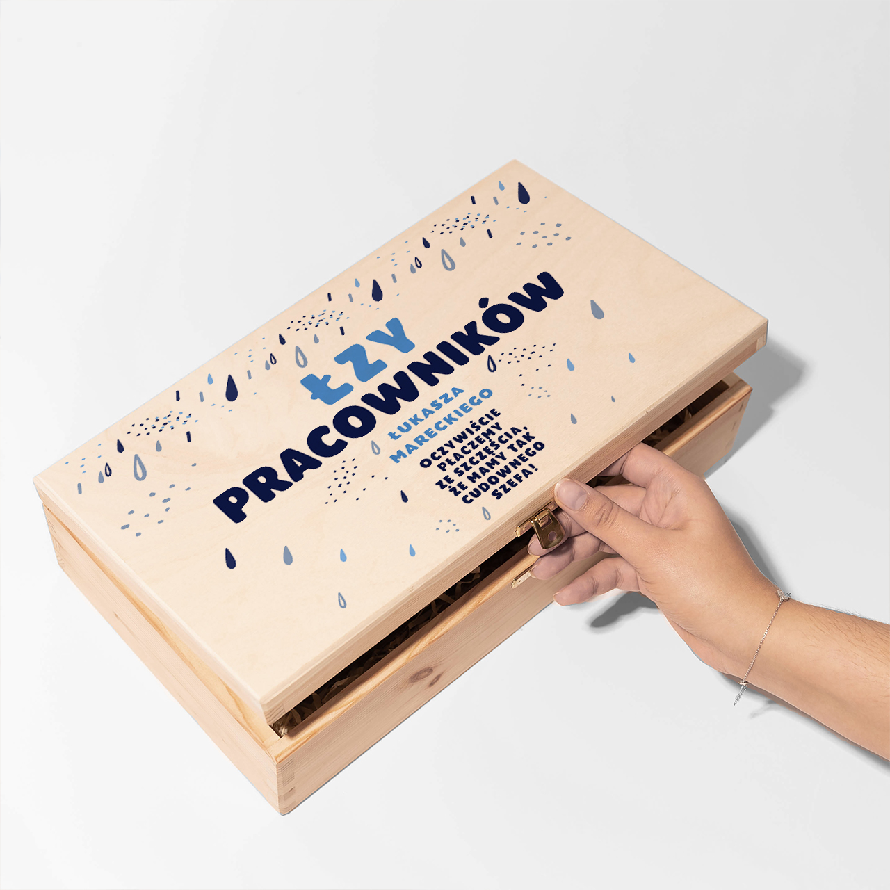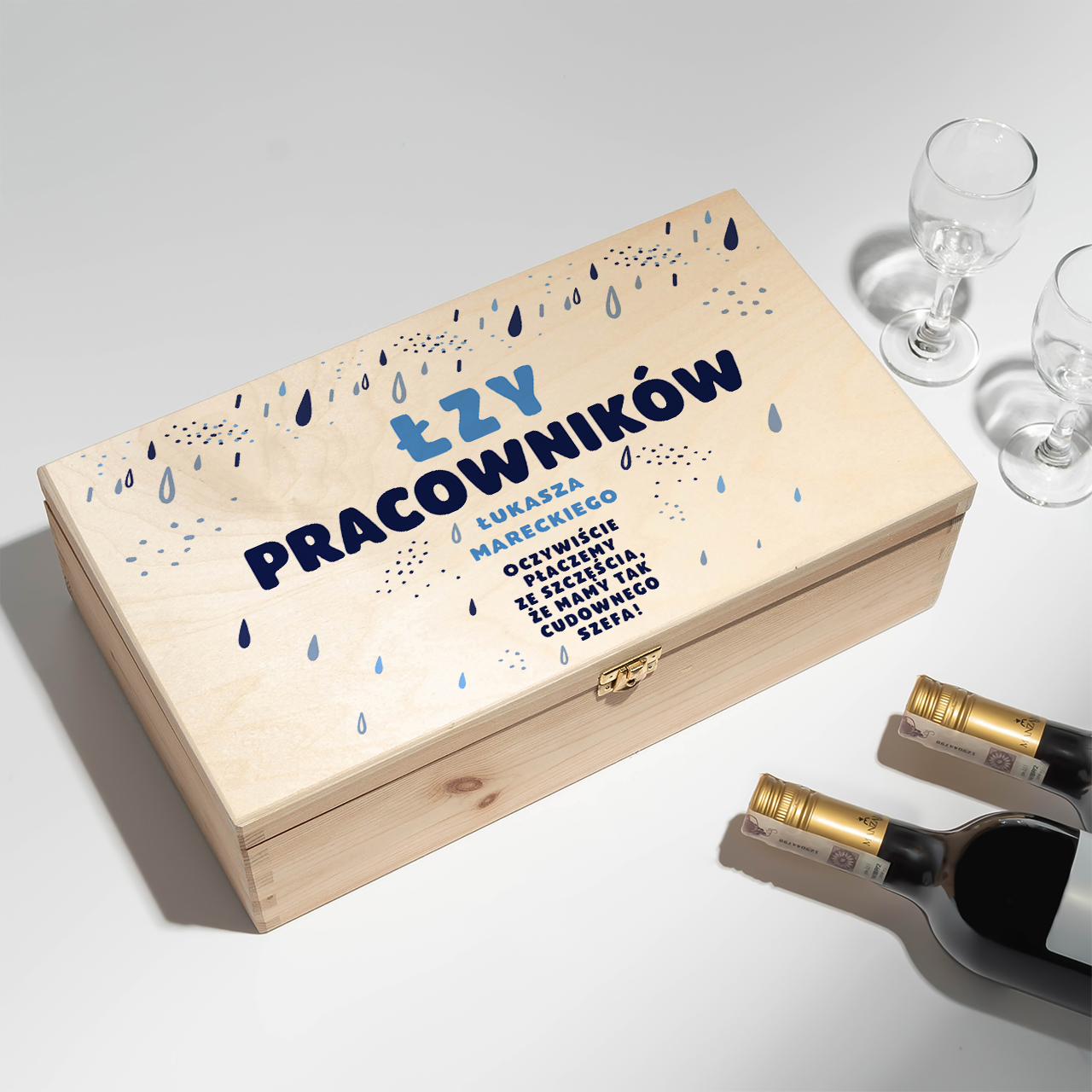 Szukasz pomysłu na upominek, który wywoła uśmiech i doda lekkości firmowej atmosferze? Skrzynka na dwa wina ŁZY PRACOWNIKÓW zabawny prezent dla szefa to humorystyczna propozycja, która świetnie sprawdza się podczas firmowych uroczystości, jubileuszy czy spotkań integracyjnych. Drewniana skrzynka z zabawnym nadrukiem to praktyczny i jednocześnie bardzo oryginalny pomysł, idealny wszędzie tam, gdzie liczy się dystans i poczucie humoru. Produkt pozwala stworzyć prezent, który zostanie zapamiętany i z pewnością będzie tematem wielu rozmów.