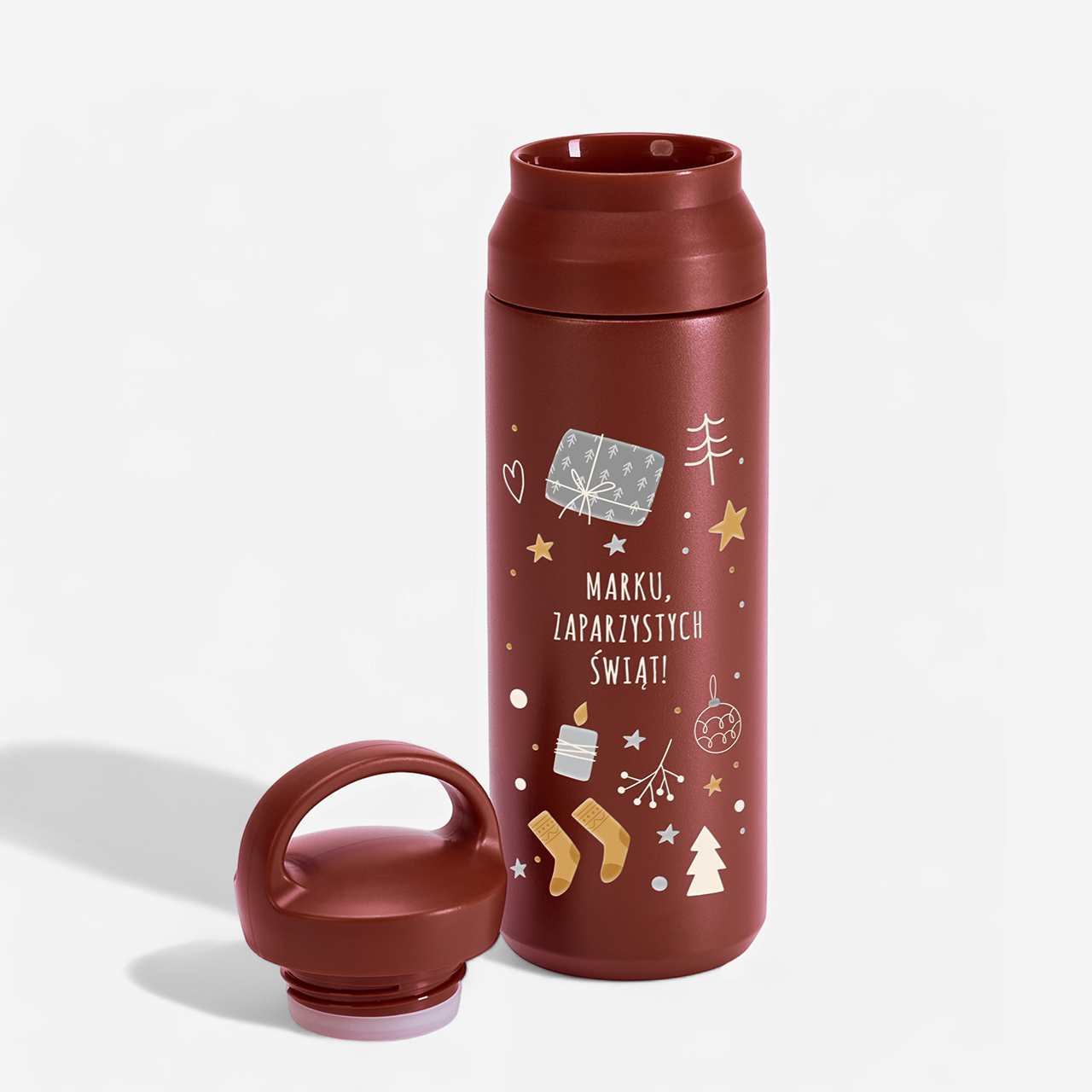 Termos z uchwytem ZAPARZYSTYCH ŚWIĄT to praktyczny i stylowy pomysł na upominek, który sprawdzi się zarówno w pracy, jak i podczas zimowych spacerów. Personalizowany nadruk nadaje mu wyjątkowego charakteru, dzięki czemu to idealny pomysł na prezent świąteczny dla chłopaka. To drobiazg, który łączy codzienną funkcjonalność z ciepłym, świątecznym akcentem.