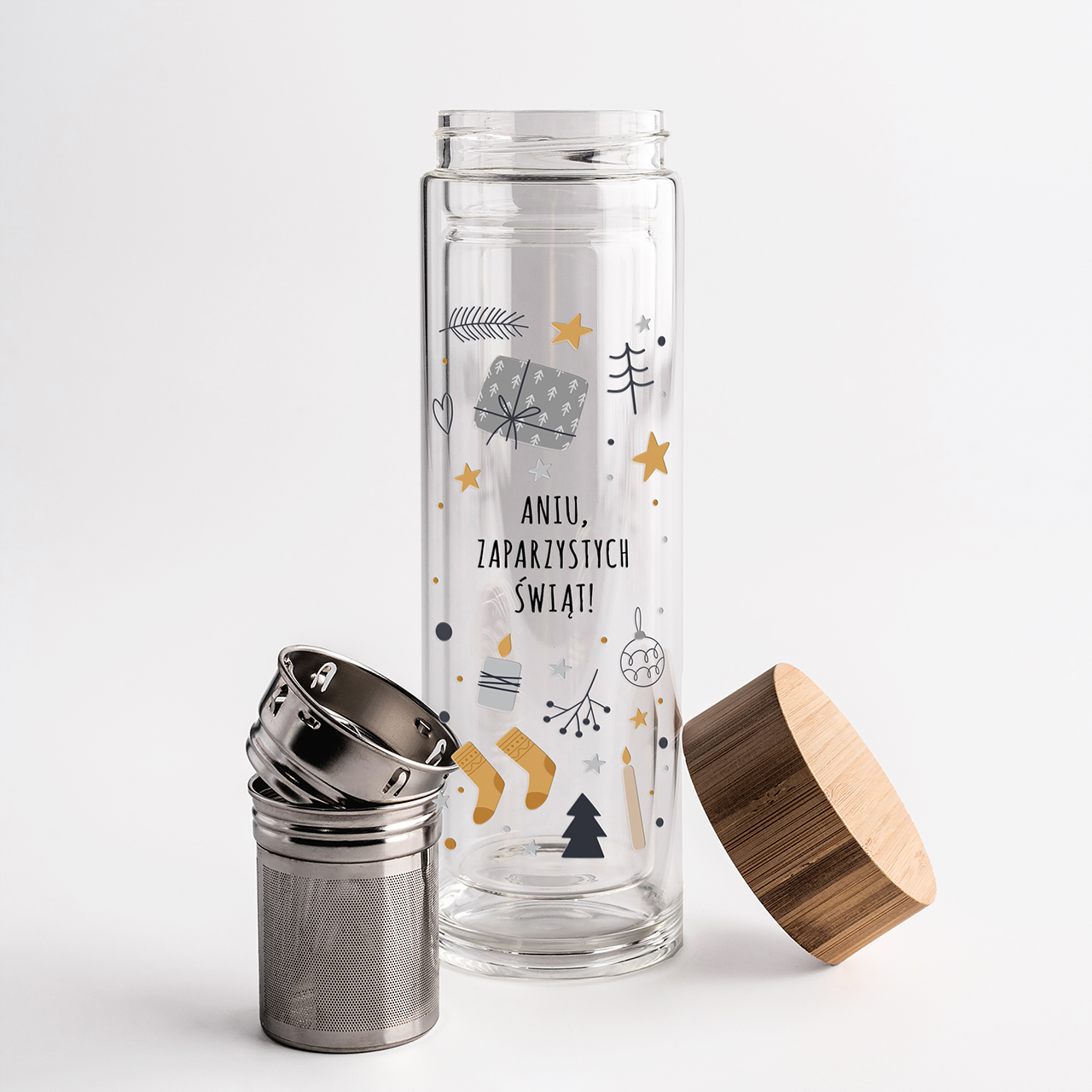 Szklany bidon świąteczny ZAPARZYSTYCH ŚWIĄT prezent na Gwiazdkę