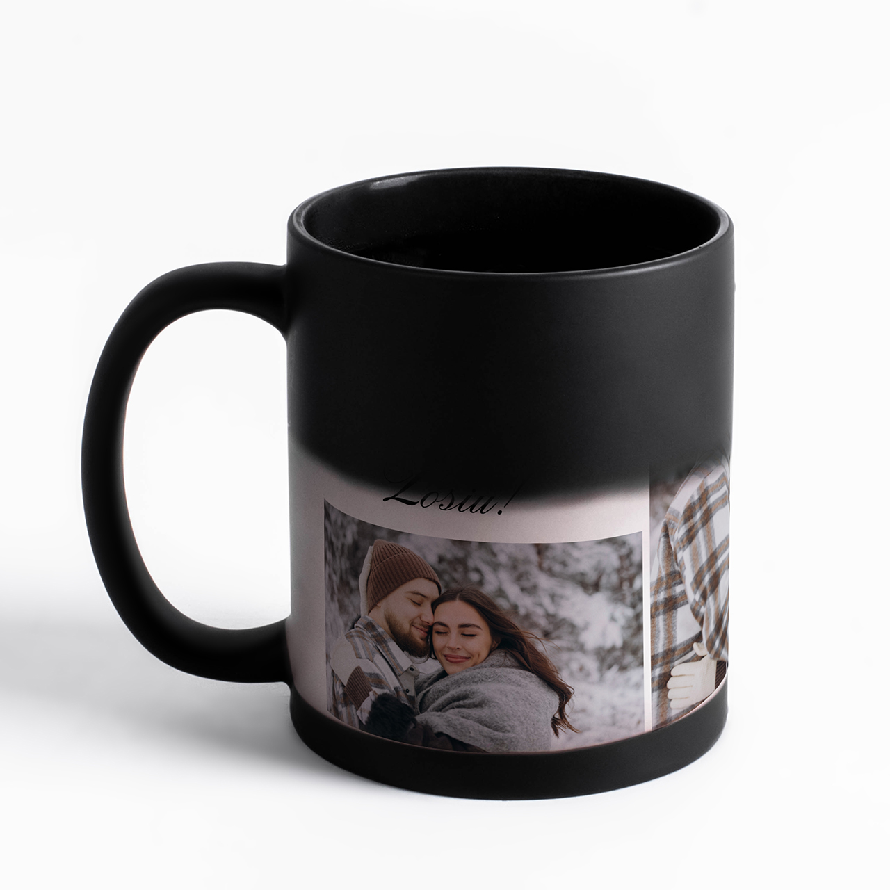 Magiczny kubek na Święta ze zdjęciami KOLAŻ to wyjątkowy sposób na stworzenie ciepłego, osobistego upominku, który zaskoczy efektowną zmianą po nalaniu gorącego napoju. Ten kubek świąteczny zachwyca nie tylko elegancką, ciemną powłoką, ale też magicznym działaniem, które ujawnia kolaż fotograficzny. To idealny prezent świąteczny dla bliskich, którzy kochają niebanalne i pełne emocji drobiazgi.