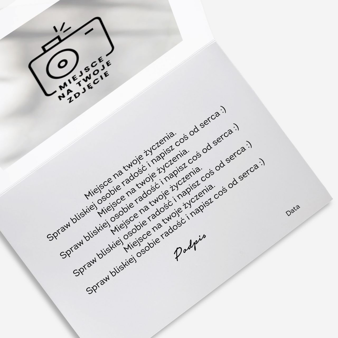 - wewnątrz miejsce na treść życzeń oraz zdjęcie