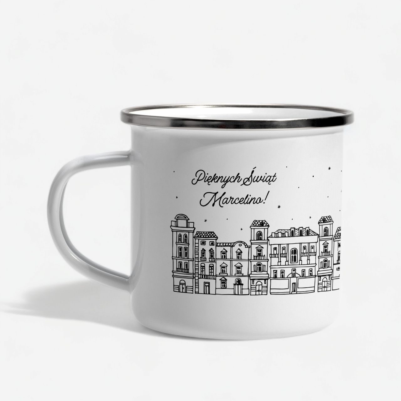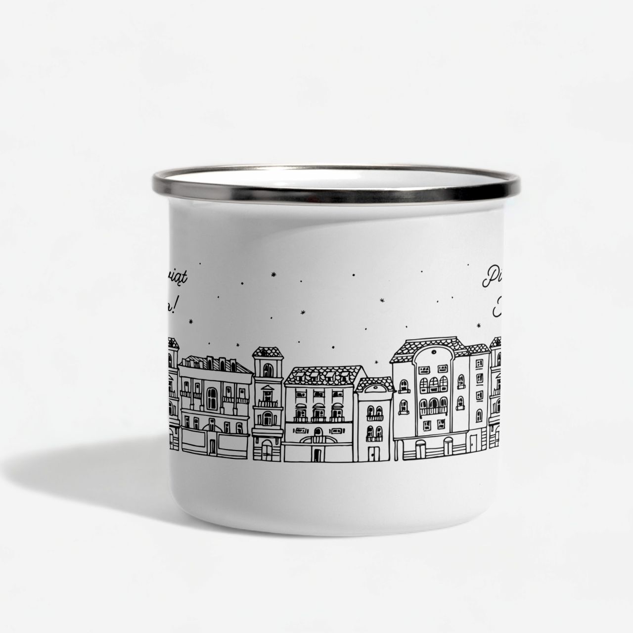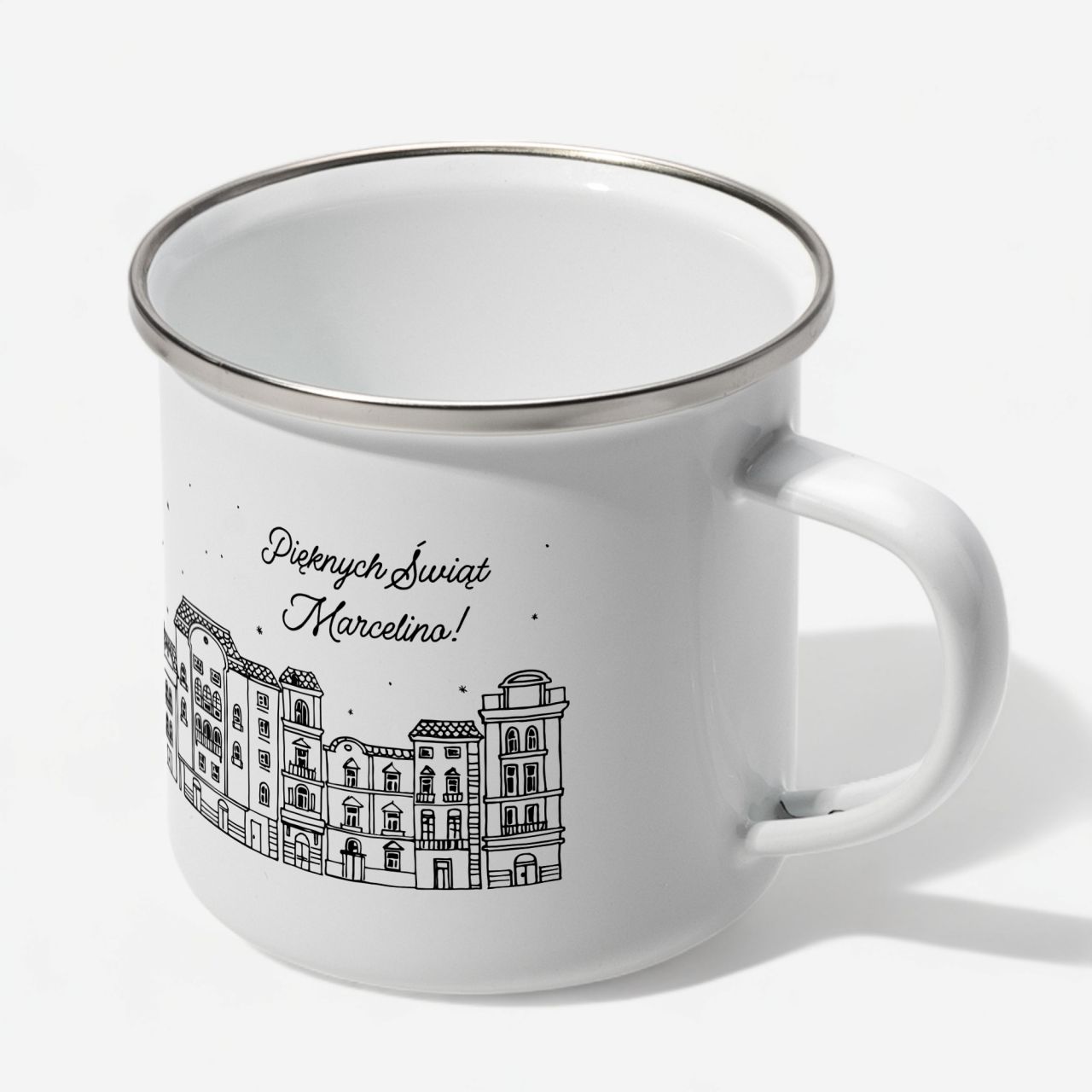 - metalowy kubek emaliowany ze srebrną obwódką