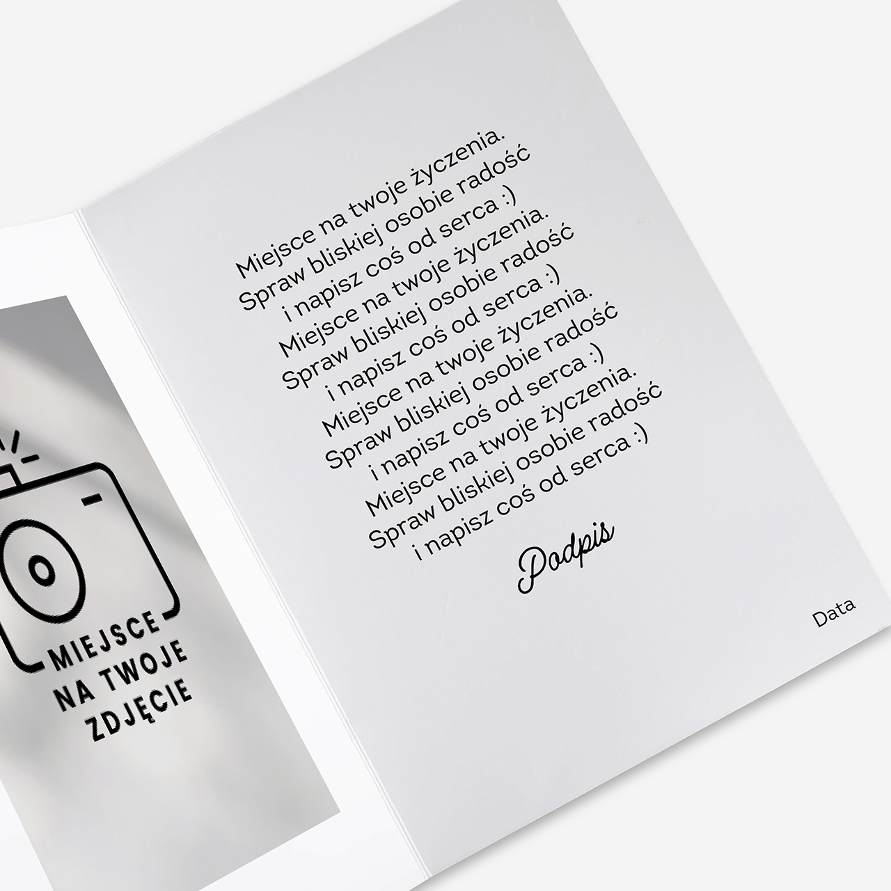 • wewnątrz miejsce na treść życzeń oraz zdjęcie
