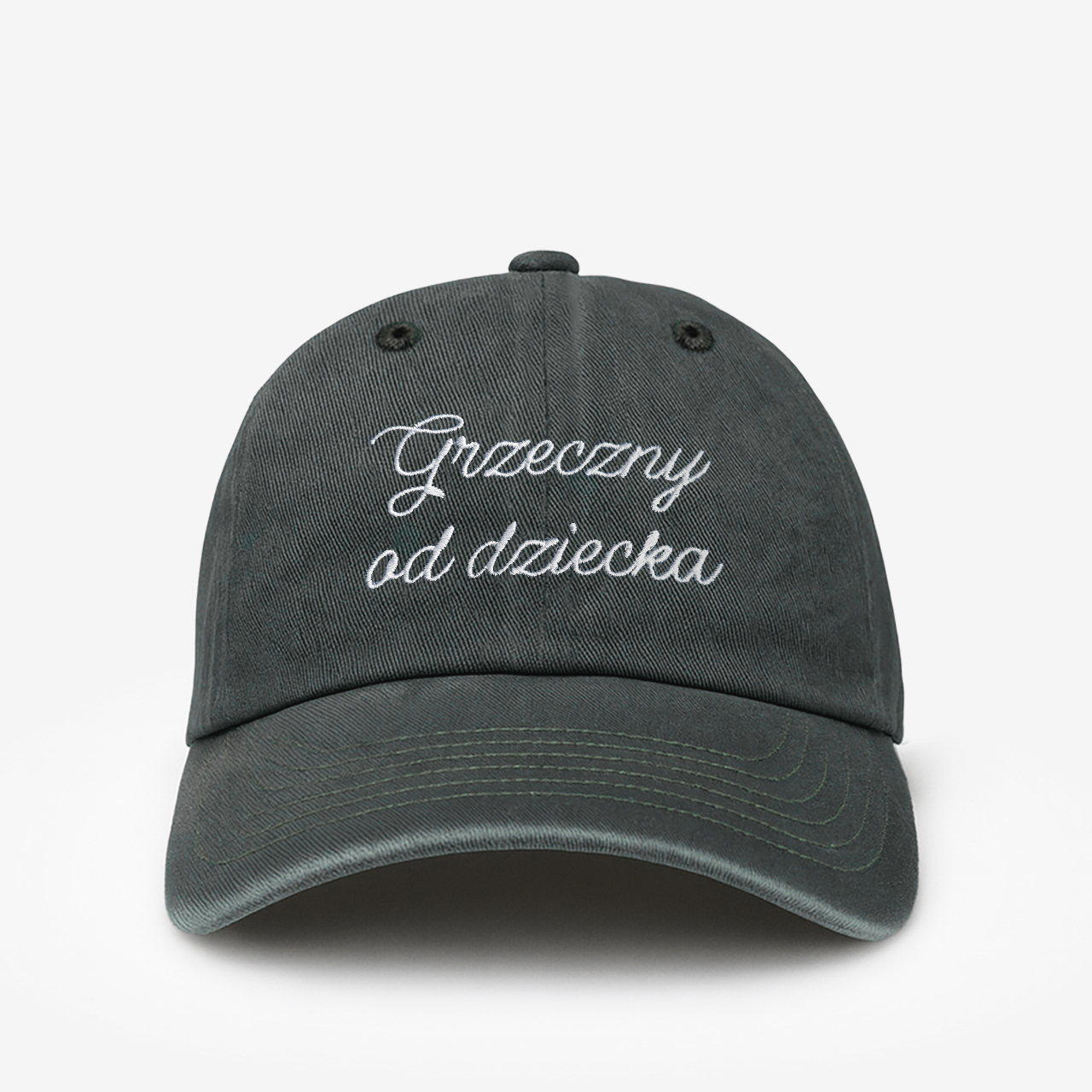 - ciemnoszara, klasyczna czapka z daszkiem z efektem sprania