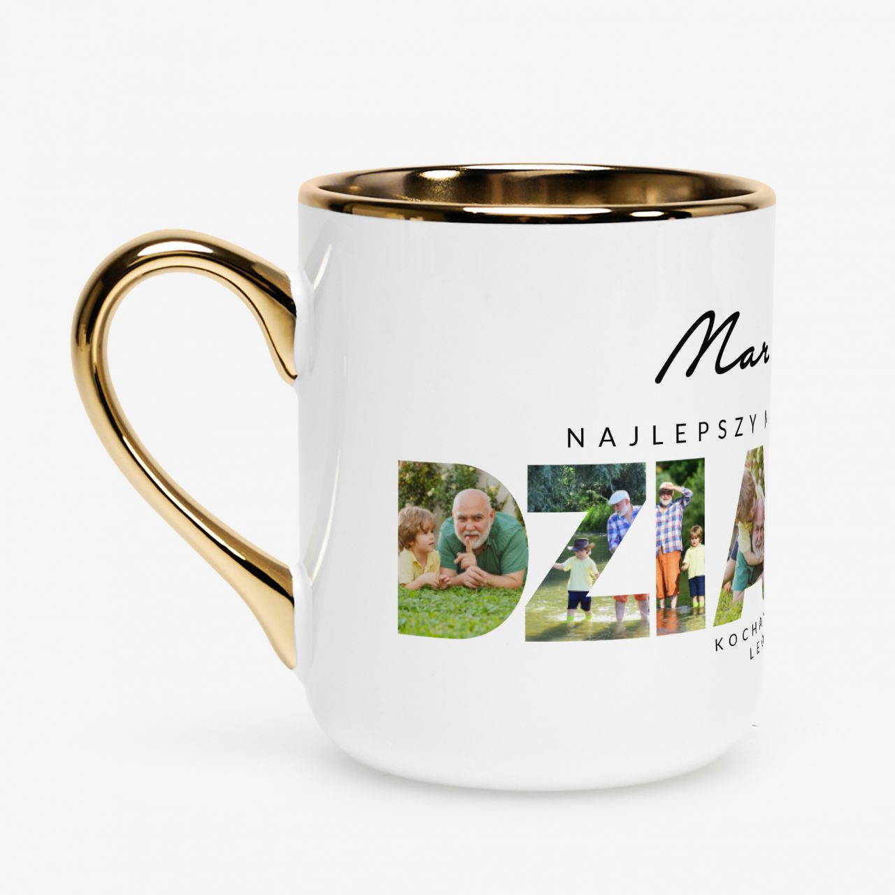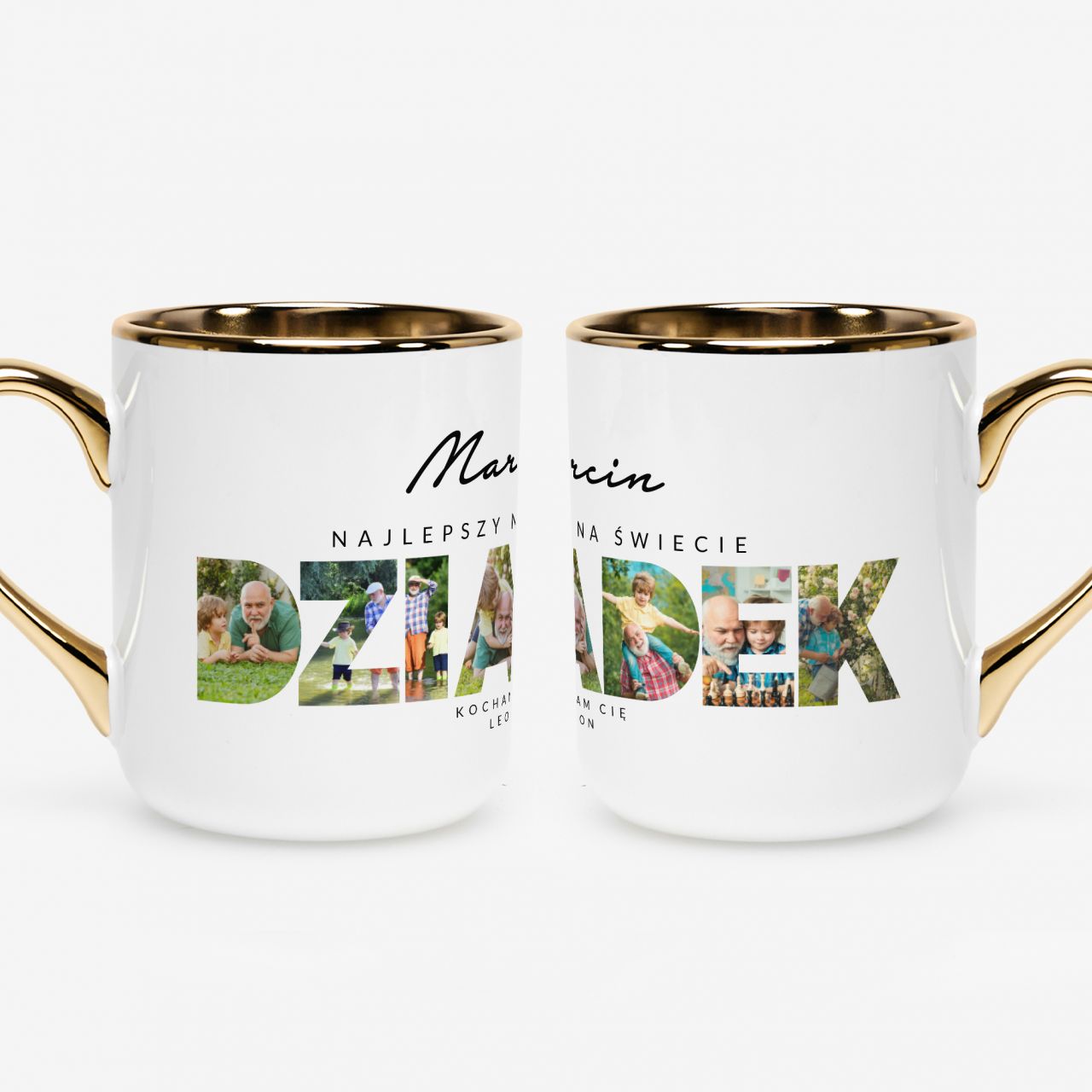 Kubek biało-złoty ze zdjęciami PREZENT DLA DZIADKA