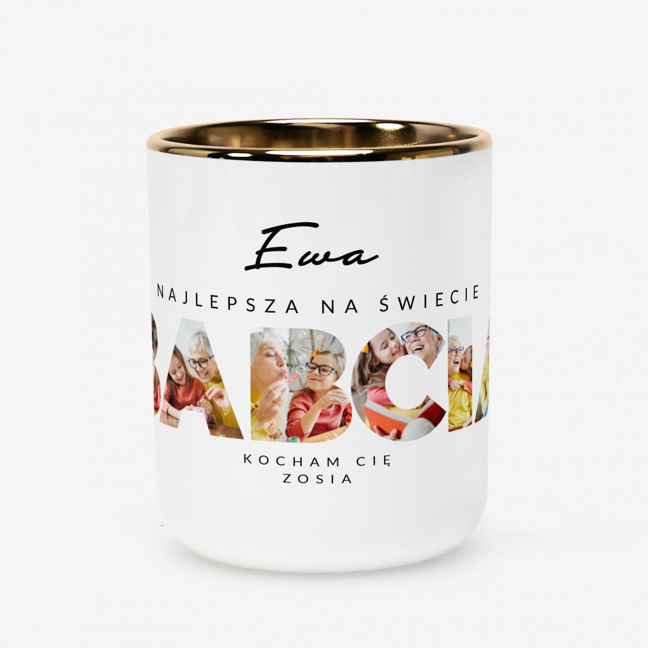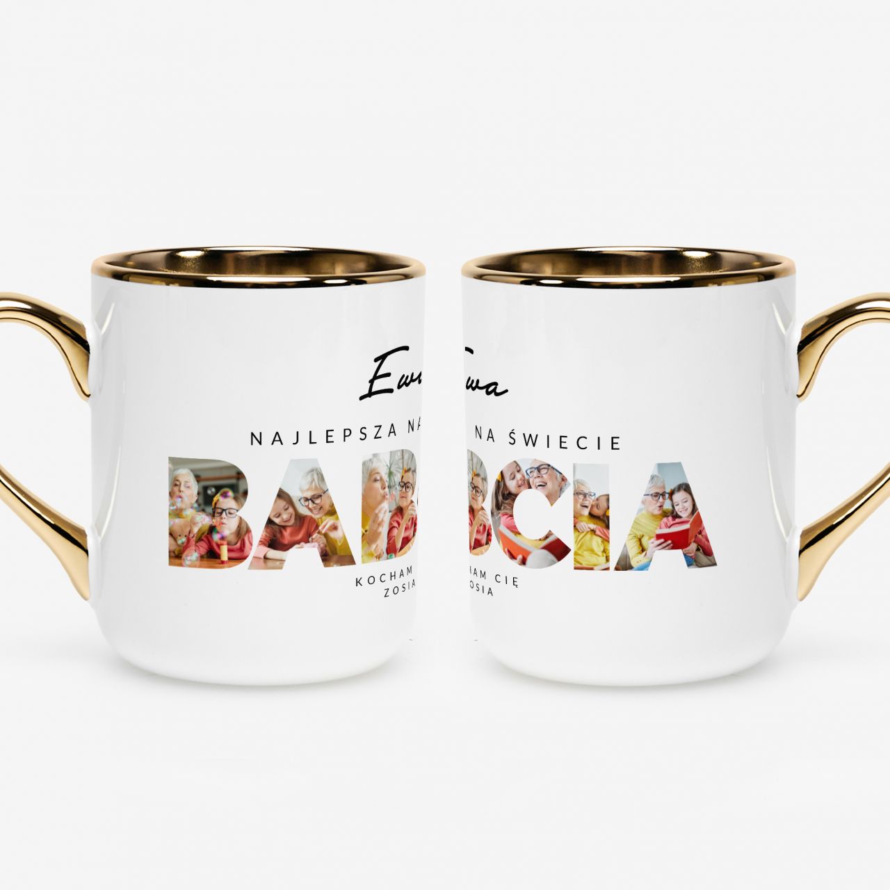 Kubek biało-złoty ze zdjęciami PREZENT DLA BABCI