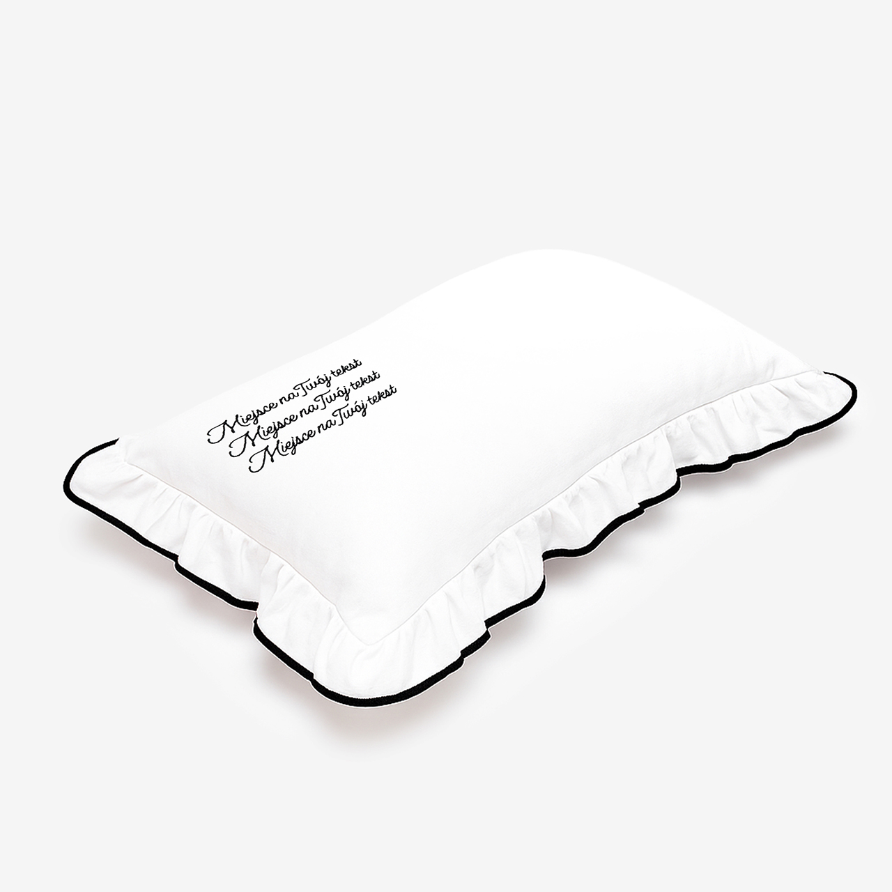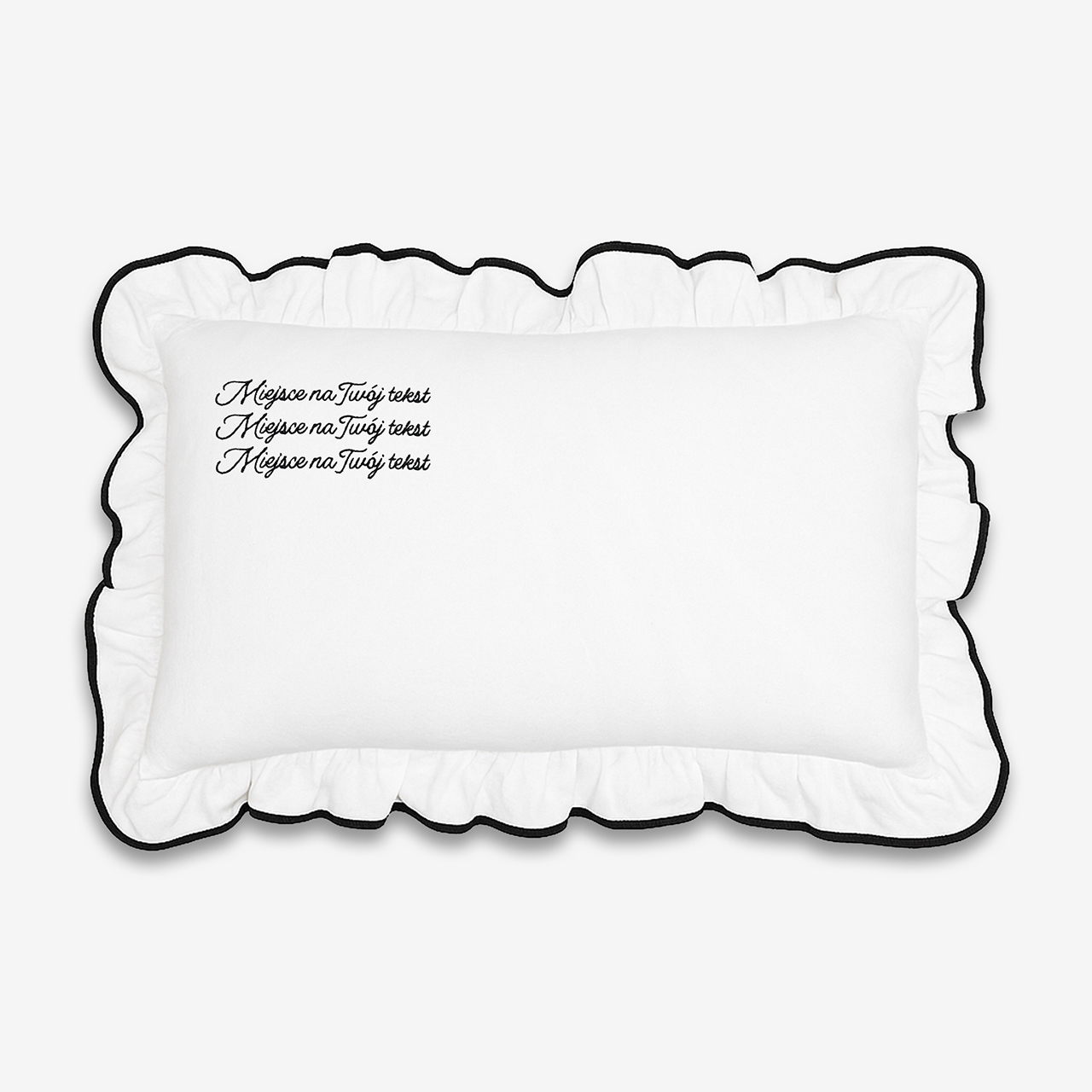 Dekoracyjna poduszka z haftem i falbanką TWÓJ TEKST