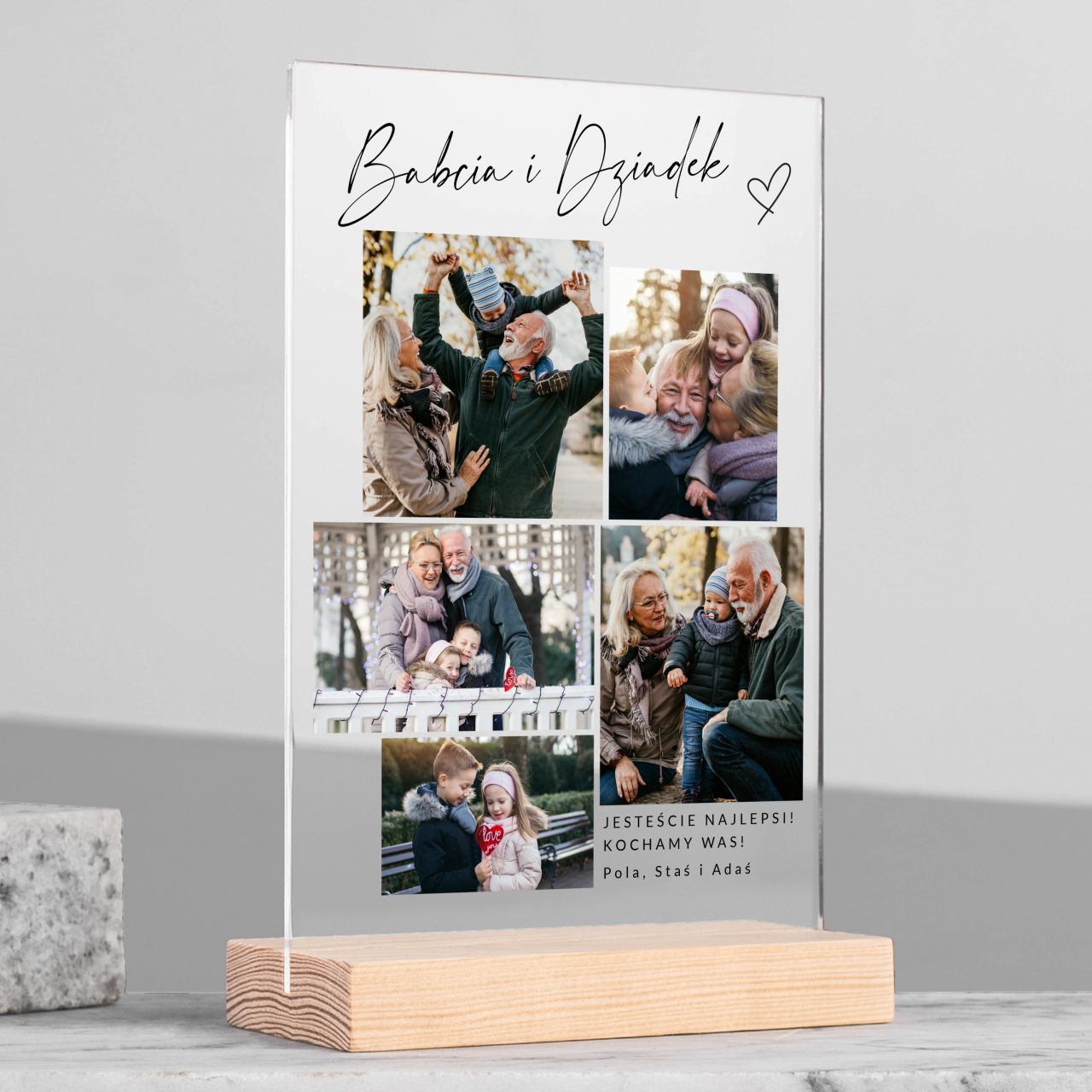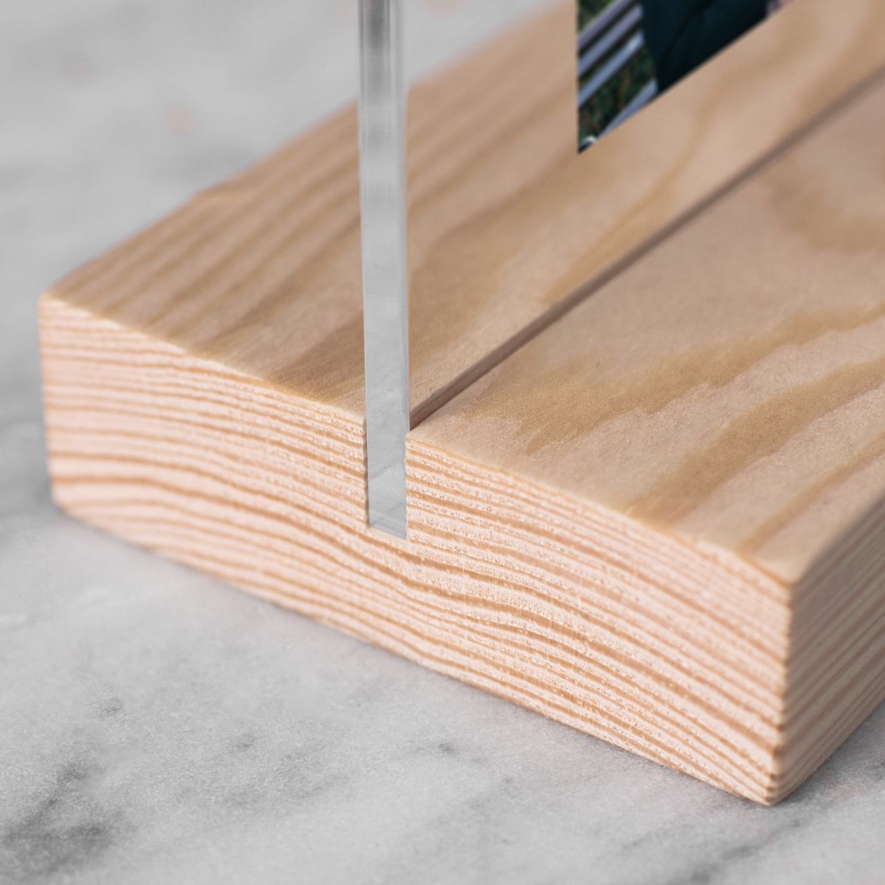 - przezroczysta ramka plexi na drewnianej podstawce