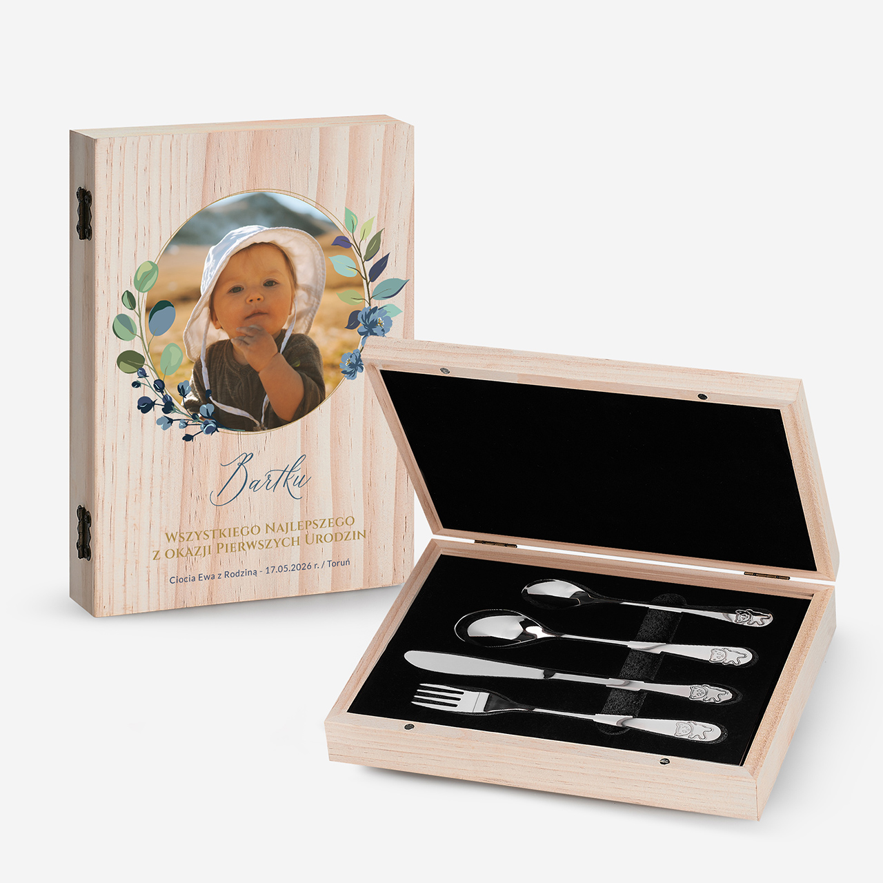 - całość zapakowane w pudełko wykonane z drewna sosnowego zamykanego na dwa magnesy
