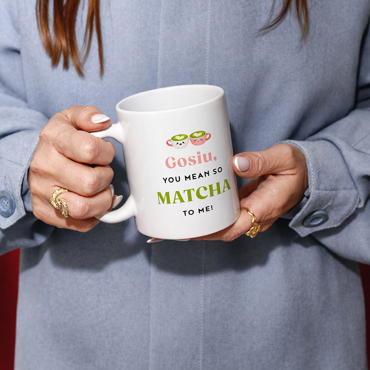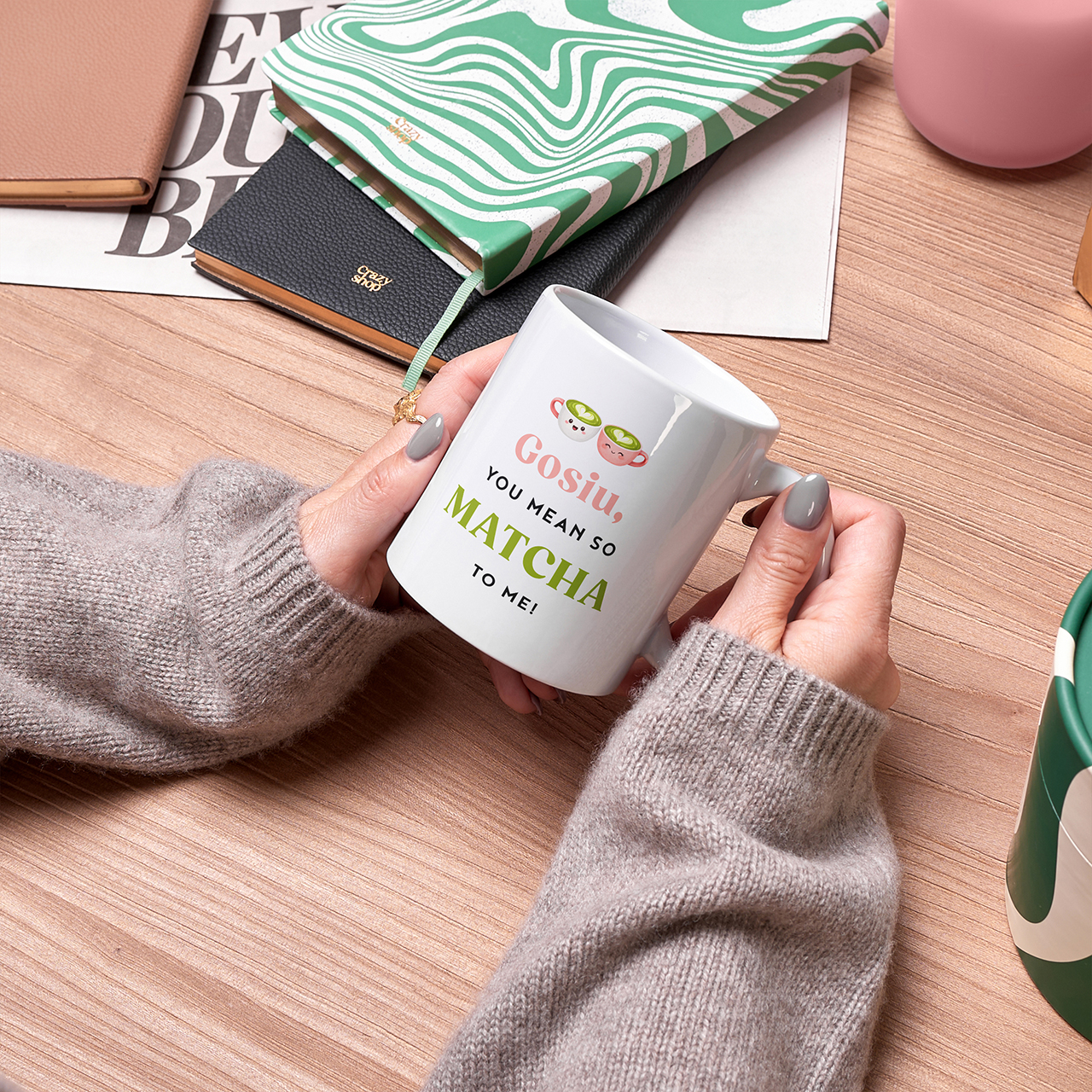 Personalizowany kubek dla dziewczyny to stylowy i lekki w odbiorze produkt, który łączy codzienną funkcjonalność z subtelnym przekazem. Motyw matchy oraz zabawna gra słów sprawiają, że kubek wyróżnia się na tle klasycznych propozycji prezentowych. To doskonały wybór dla osób, które lubią drobne rytuały i estetyczne dodatki w codziennym życiu. Kubek świetnie sprawdzi się zarówno podczas porannej kawy, jak i popołudniowej herbaty.
