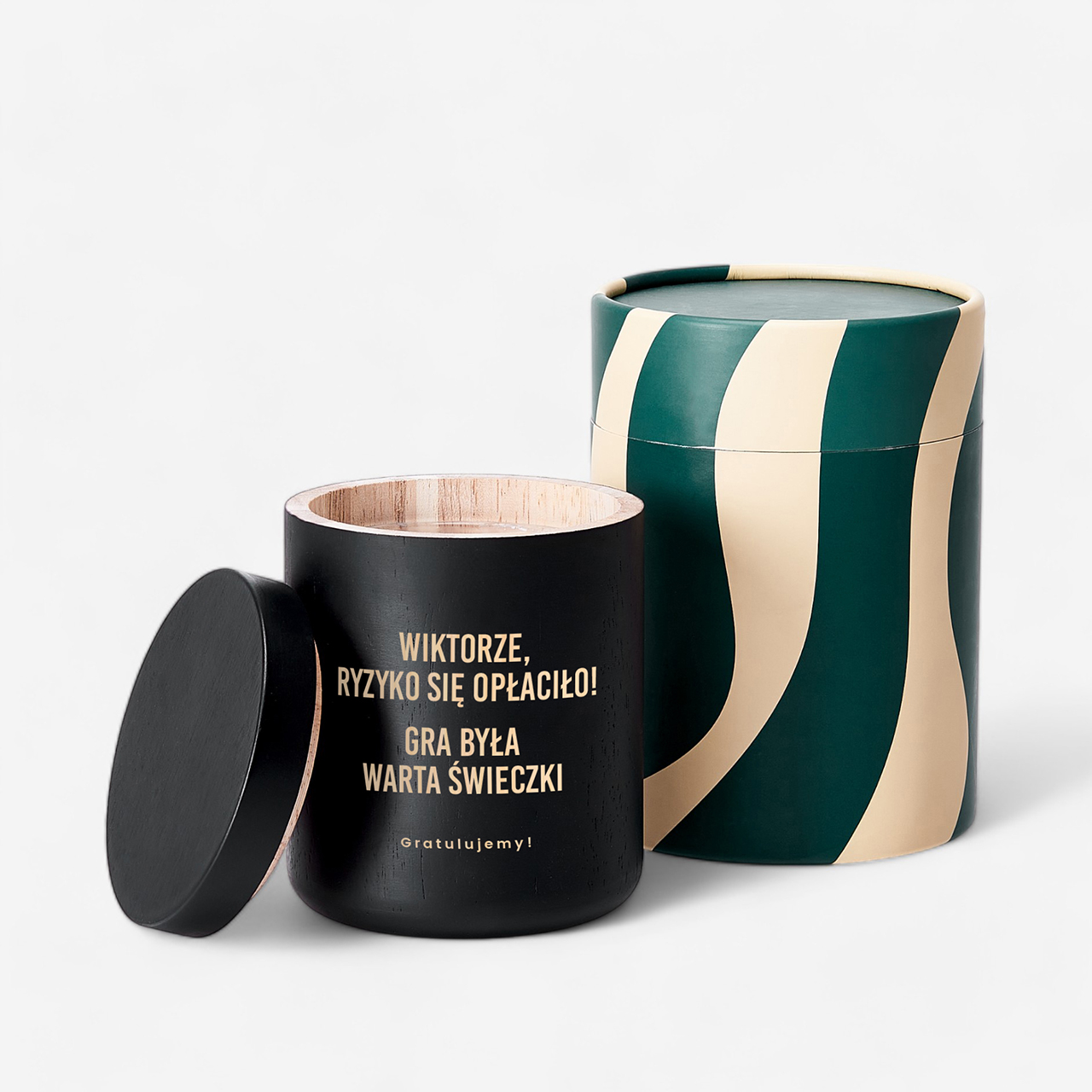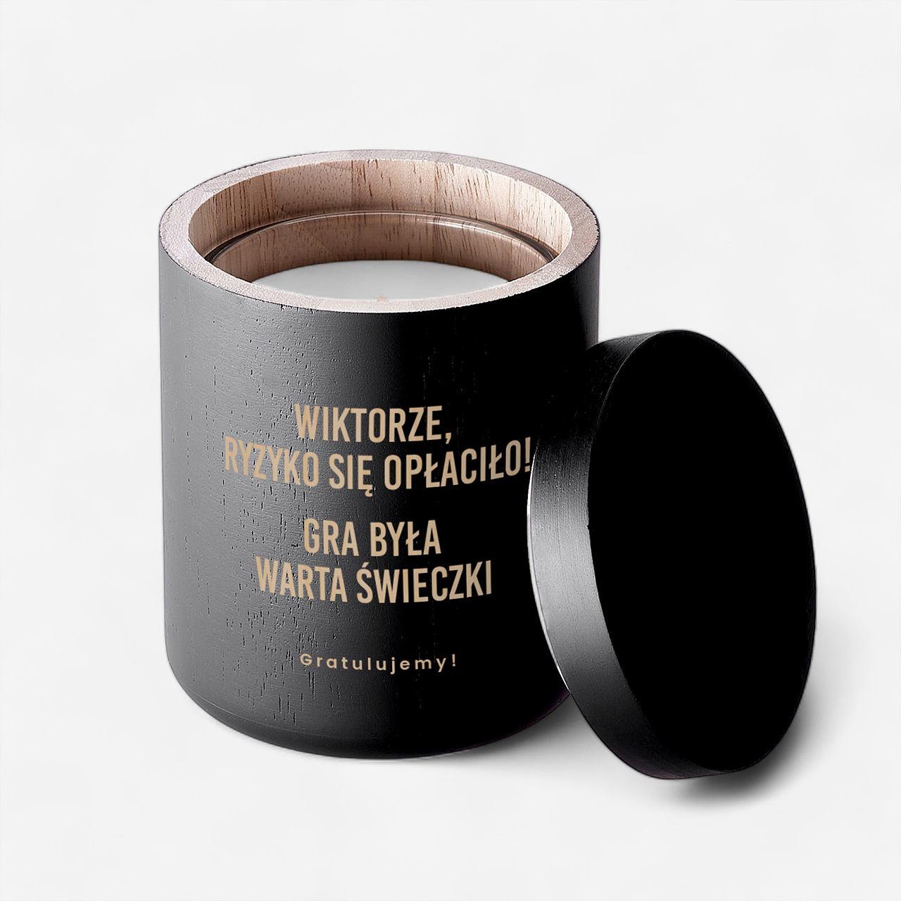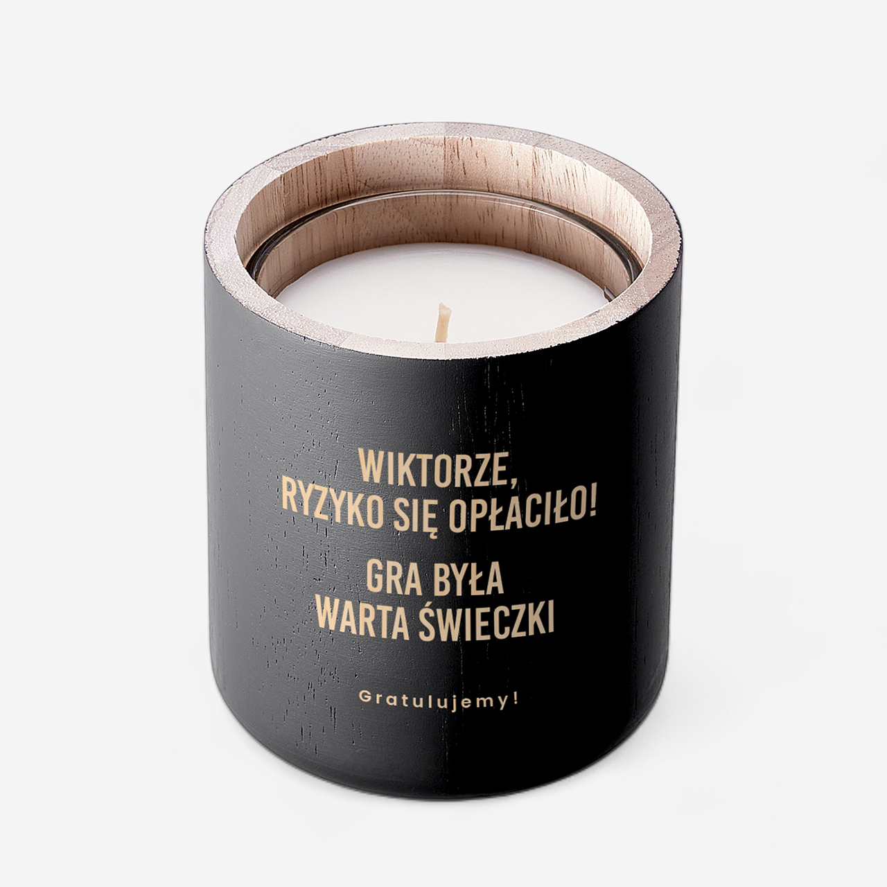 Grawerowana świeca to elegancka i jednocześnie symboliczna propozycja na wyjątkowe okazje, które wymagają odpowiedniej oprawy. Stylowa świeca umieszczona w czarnym, minimalistycznym pojemniku prezentuje się nowocześnie i bardzo estetycznie. Grawer z wyraźnym, gratulacyjnym przekazem nadaje całości osobisty charakter i sprawia, że prezent staje się czymś więcej niż zwykłym dodatkiem. To połączenie designu, humoru i klasy, które doskonale wpisuje się w męskie gusta.