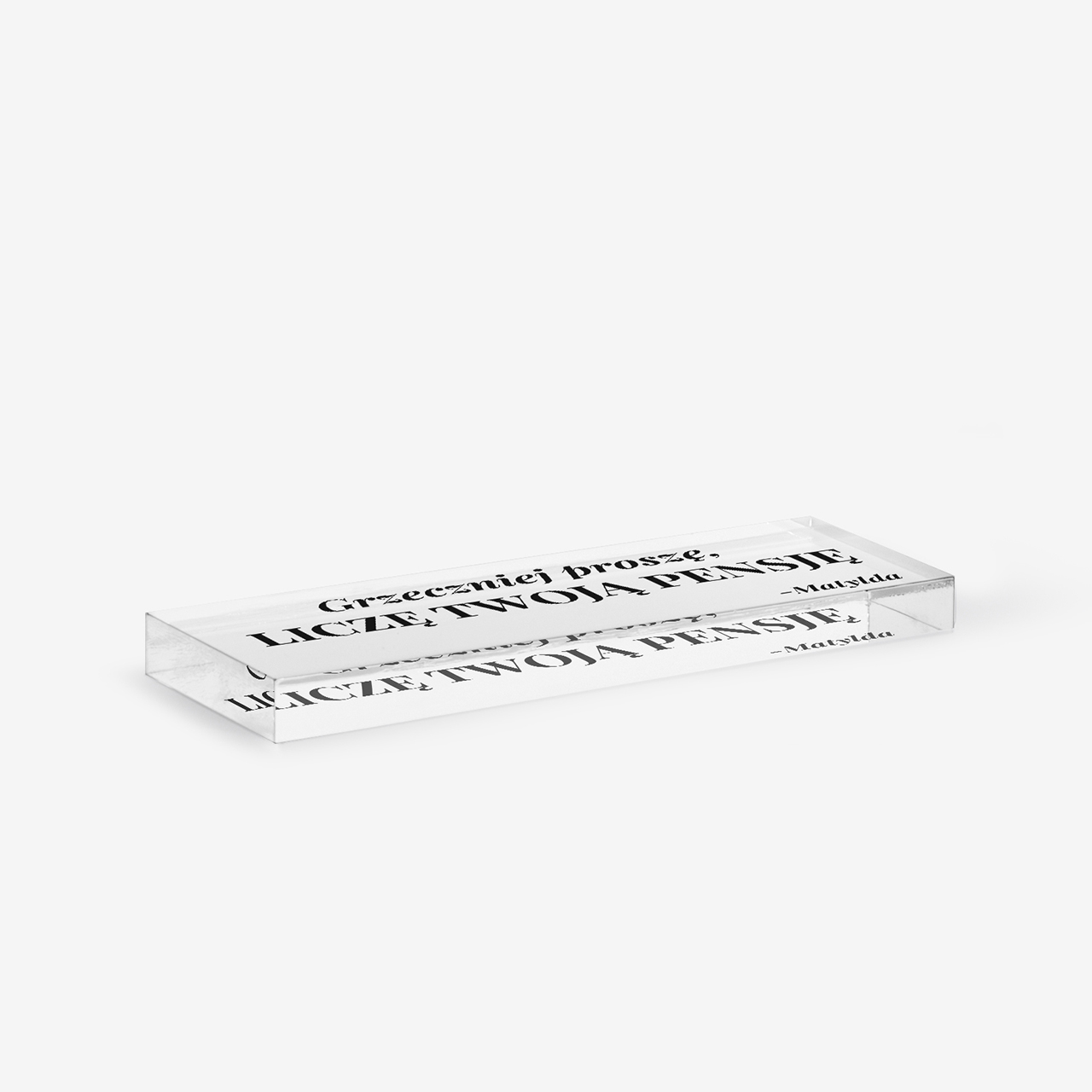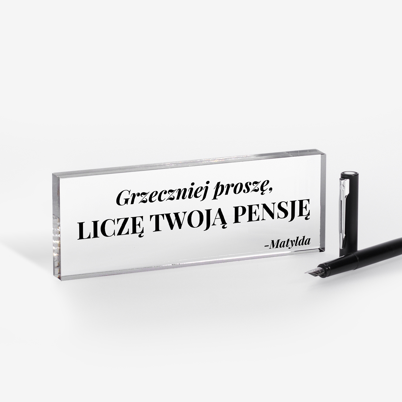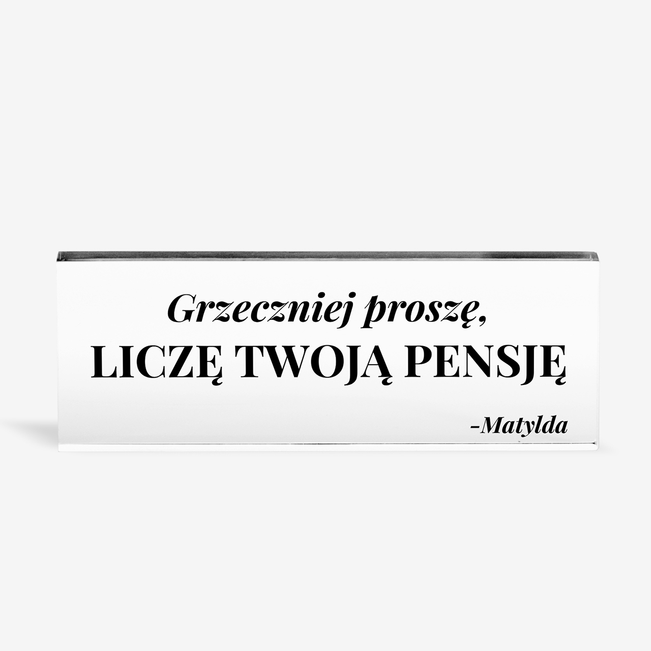 Śmieszny prezent dla księgowej to oryginalna i humorystyczna propozycja, która doskonale łączy elegancką formę z zabawnym przekazem. Szklany bloczek z wyraźnym napisem przyciąga uwagę i w czytelny sposób podkreśla dystans do codziennych obowiązków zawodowych. Minimalistyczny design sprawia, że prezent dobrze prezentuje się na biurku, nie zaburzając jego estetyki. To drobny upominek, który potrafi wywołać uśmiech i stać się charakterystycznym elementem przestrzeni pracy.