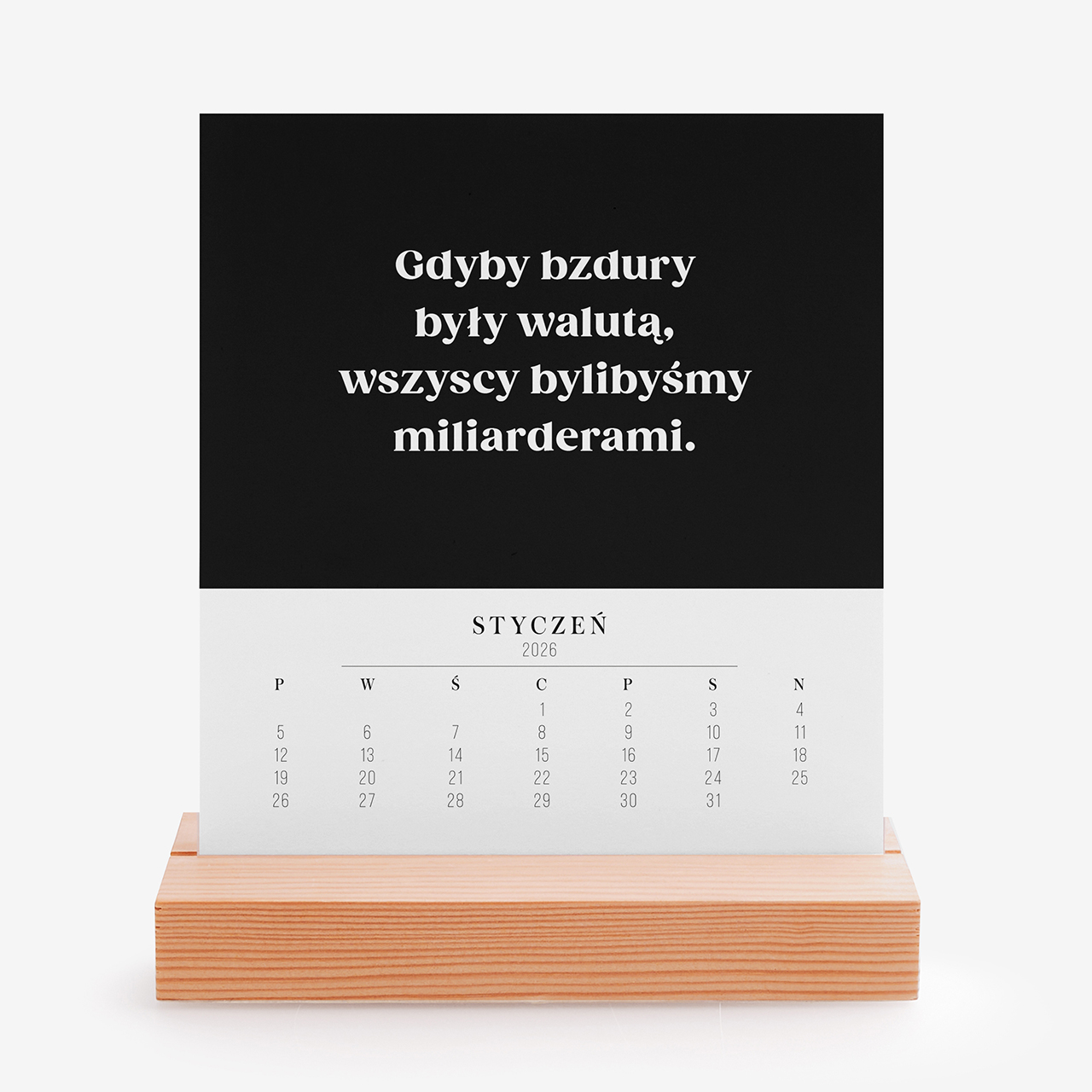Personalizowany kalendarz biurowy to oryginalny gadżet, który w humorystyczny sposób podsumowuje codzienność w biurze. Minimalistyczna, elegancka forma oraz możliwość personalizacja imieniem sprawiają, że produkt nabiera wyjątkowego charakteru. Drewniana podstawka i nowoczesny design doskonale prezentują się na każdym biurko. Personalizowany kalendarz biurowy świetnie sprawdzi się jako upominek dla kolegi z pracy na różne okazje.