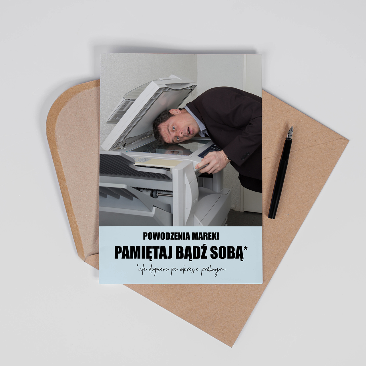Pożegnanie w pracy nie musi być smutne i oficjalne. Czasami najlepszym sposobem na zakończenie wspólnego etapu jest odrobina humoru i dobre życzenia na przyszłość. Kartka w dużym formacie pozwala zebrać podpisy całego zespołu i stworzyć wyjątkową pamiątkę. Dlatego właśnie Śmieszna kartka na pożegnanie kolegi z pracy to świetny sposób, aby z uśmiechem powiedzieć powodzenia w nowej pracy.