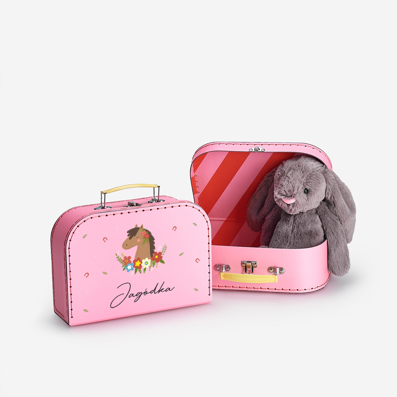 Każde dziecko uwielbia mieć swoje małe miejsce na najważniejsze skarby. Ulubione zabawki, drobne pamiątki czy dziecięce sekrety zasługują na wyjątkowe przechowywanie. Urocza grafika z koniem sprawia, że walizeczka od razu przyciąga uwagę małej miłośniczki zwierząt. Idealnym pomysłem na taki upominek jest Tekturowa walizeczka KOŃ prezent dla koniary.