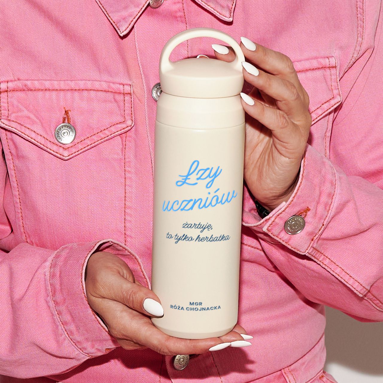 Nie każdy dzień w szkole jest spokojny, ale zawsze można podejść do niego z humorem. Ten termos wyróżnia się zabawnym napisem i subtelnym designem, który pasuje do codziennego stylu. Jest lekki, wygodny i idealny do zabrania do pracy lub na spacer. Personalizowany termos ŁZY UCZNIÓW to praktyczny i jednocześnie śmieszny prezent dla nauczycielki, który od razu wywołuje uśmiech. Sprawdzi się jako codzienny towarzysz kawy lub herbaty.