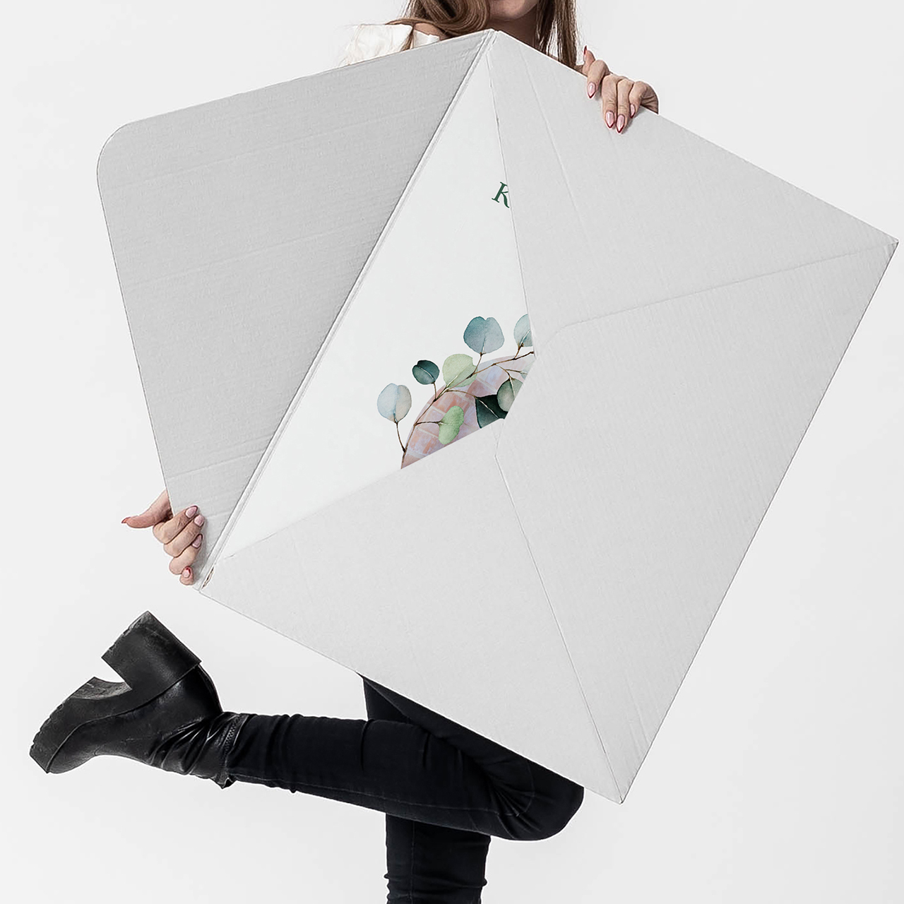 - kartka wraz z białą kopertą zapakowana w dodatkowy karton