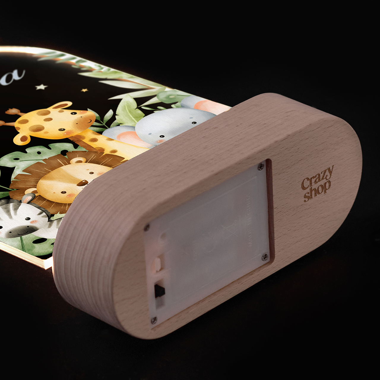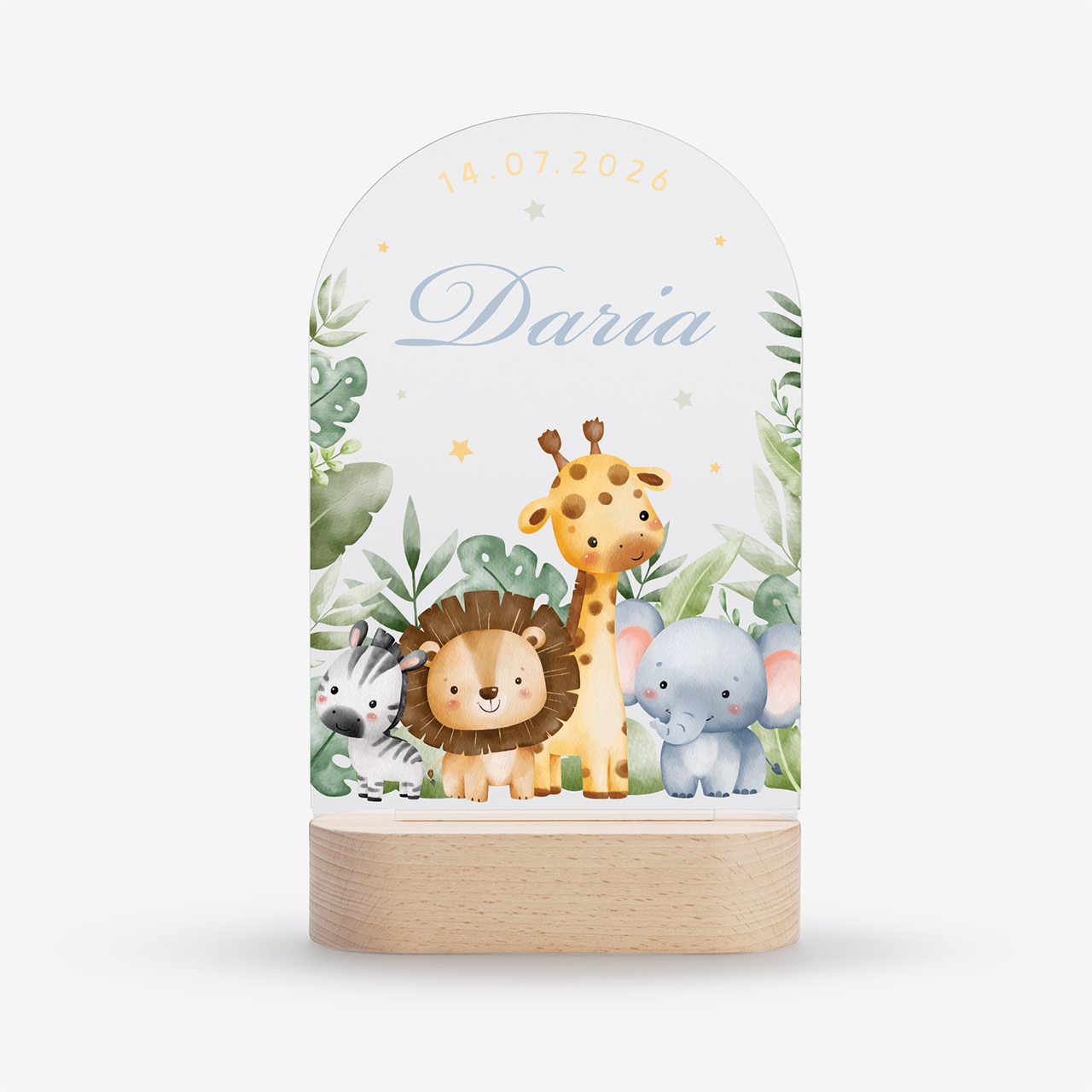Stwórz wyjątkową, przytulną atmosferę w pokoju dziecka dzięki tej uroczej lampce nocnej z motywem safari. Delikatne światło sprzyja wyciszeniu i pomaga maluchowi spokojnie zasnąć, a bajkowa grafika przyciąga uwagę i pobudza wyobraźnię. Personalizowany nadruk z imieniem i datą sprawia, że lampka staje się piękną pamiątką na lata. To połączenie funkcjonalności i estetyki, które doskonale wpisuje się w dziecięcą przestrzeń. Ozdobna lampka nocna dla niemowląt SAFARI to idealny wybór dla rodziców, którzy szukają czegoś wyjątkowego.