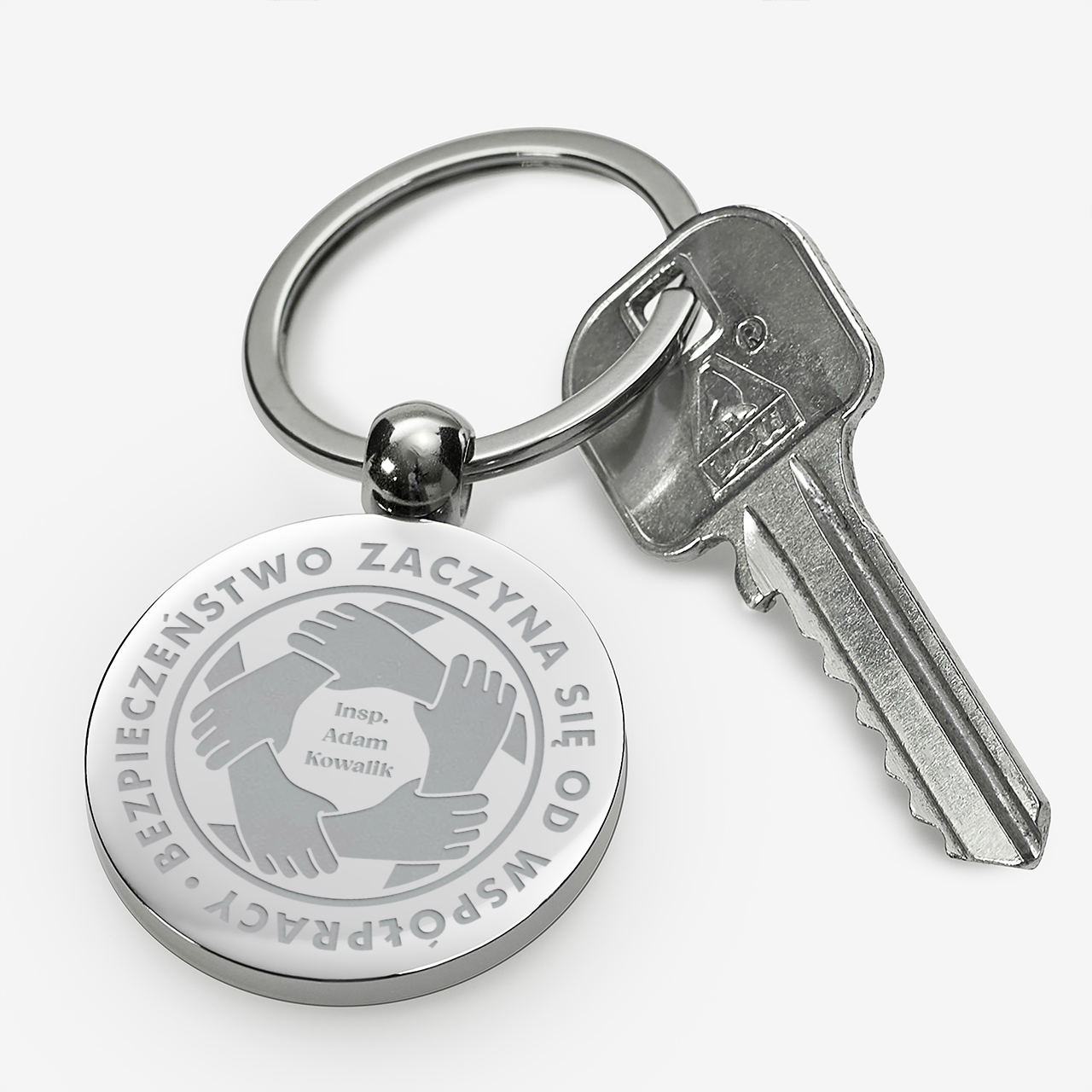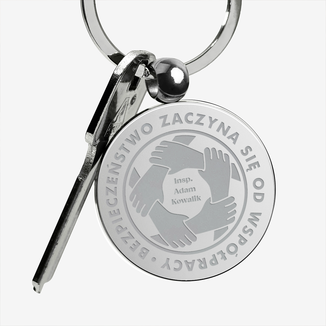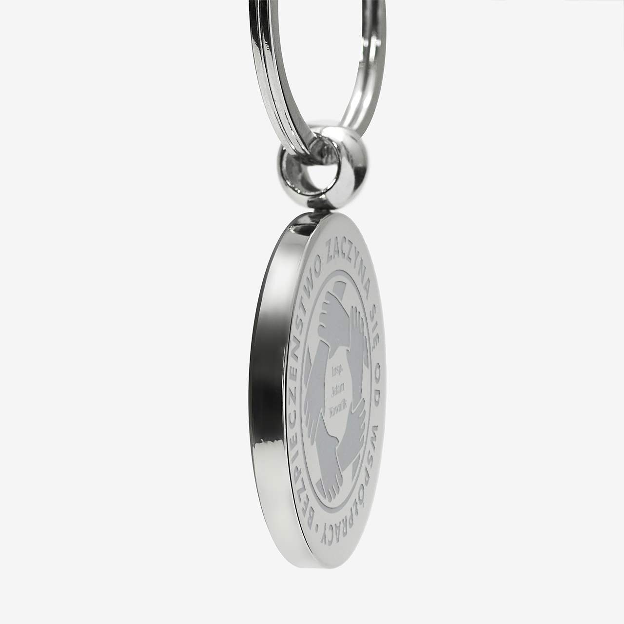 • uwaga: Zdjęcia zaprezentowane na stronie odzwierciedlają ułożenie projektu na breloczku. Prosimy wziąć pod uwagę, że odcień samego grawerunku może nieco odbiegać od wizualizacji ze względu na strukturę i skład metalu, a także różnice między partiami dostaw. Te wszystkie czynniki mogą wpływać na efekt końcowy.