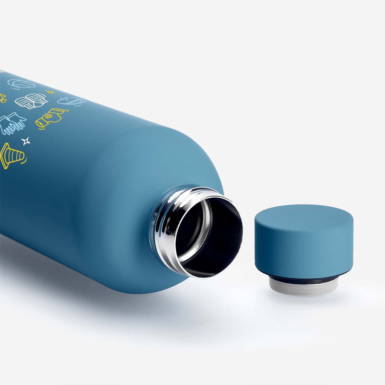 • stalowa butelka termiczna pokryta miękką, matową powłoką