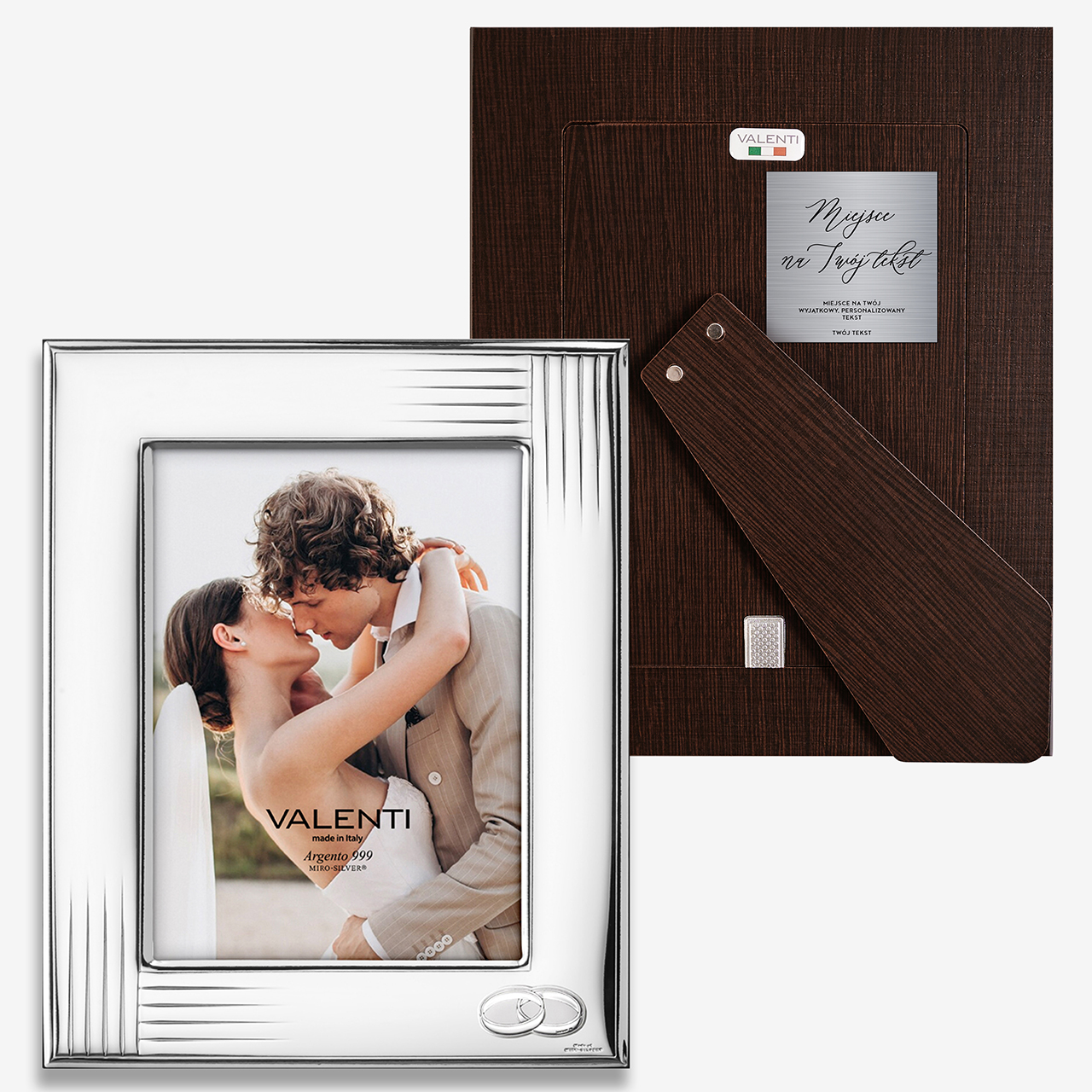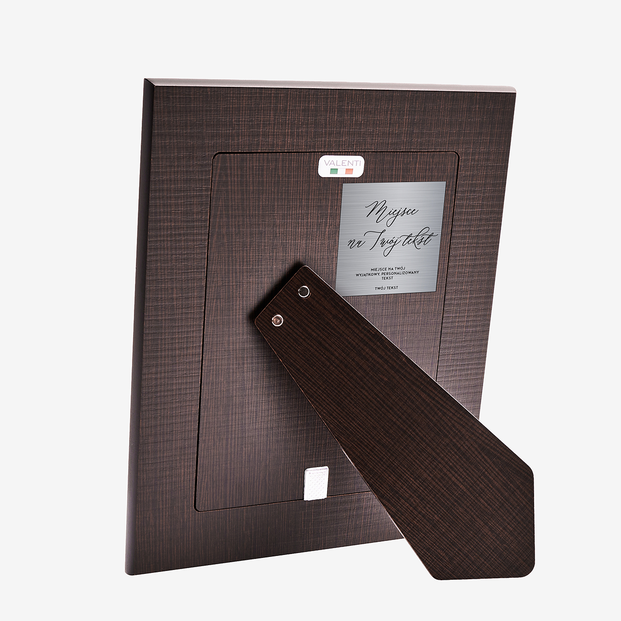 • z tyłu ramki znajduje się aluminiowa tabliczka, na której umieścisz własny tekst w formie wygrawerowanej dedykacji