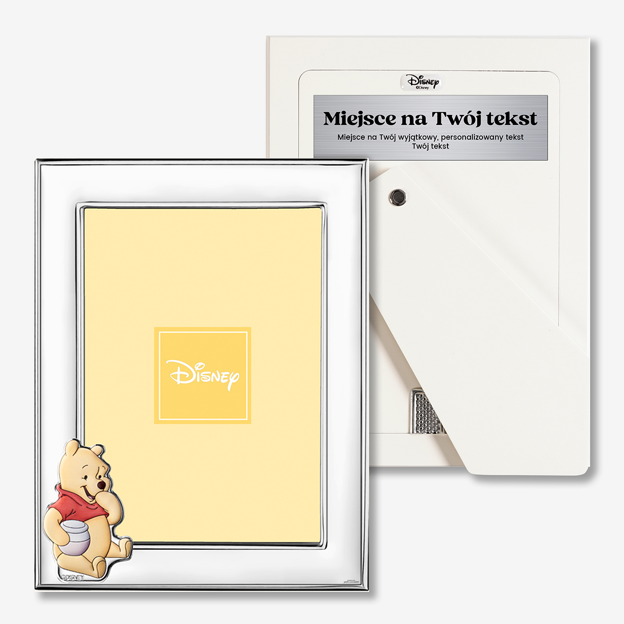 • elegancka srebrna ramka na zdjęcie z motywem Kubusia Puchatka - idealny prezent dla dziecka