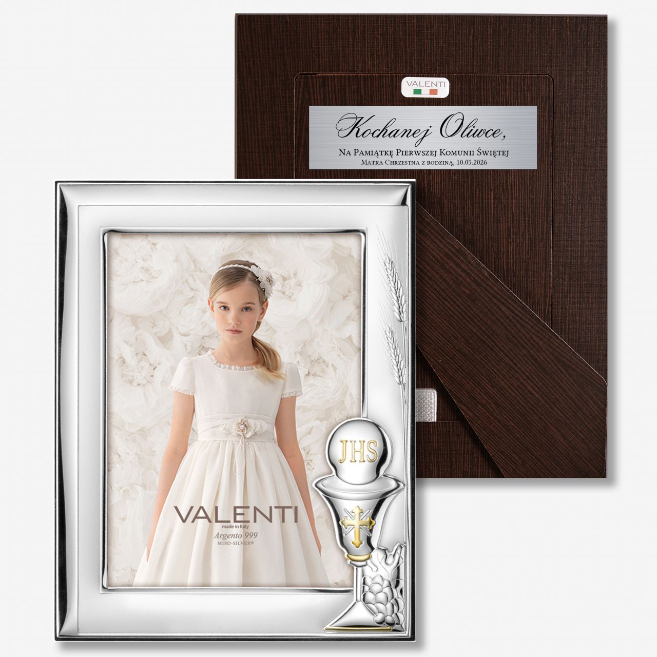 Srebrna ramka na komunię PAMIĄTKA PIERWSZEJ KOMUNII ŚWIĘTEJ