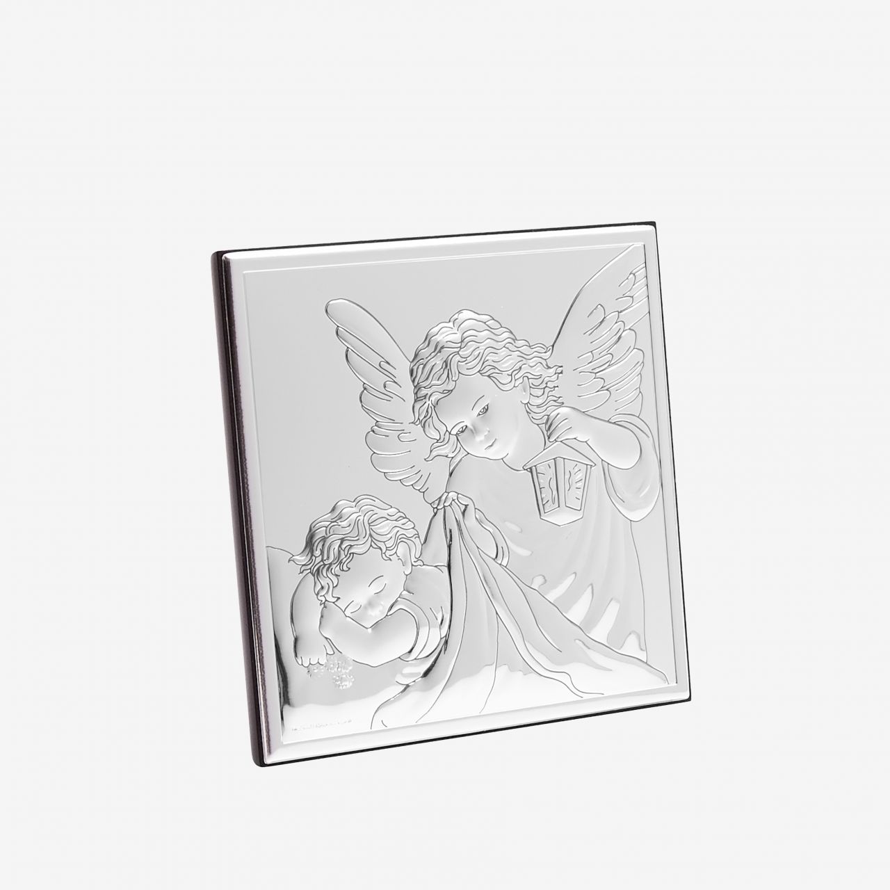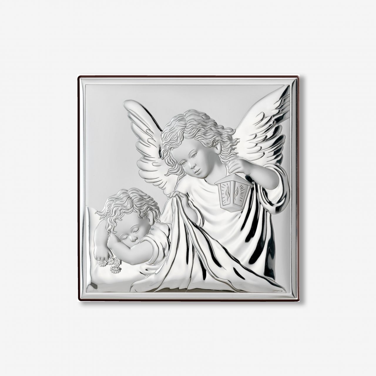 • elegancki srebrny obrazek z aniołkami idealny jako pamiątka chrztu świętego