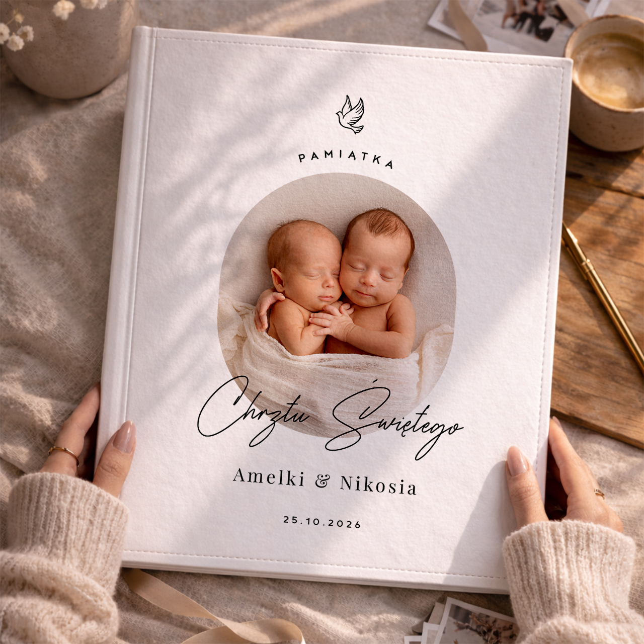 Album pozwala uporządkować najważniejsze zdjęcia i wspomnienia w jednym miejscu, tworząc piękną historię tego wyjątkowego dnia. Dzięki personalizacji nabiera indywidualnego charakteru i staje się niepowtarzalnym prezentem. To nie tylko praktyczny dodatek, ale także wzruszająca pamiątka na lata. Personalizowany album CHRZEST BLIŹNIĄT łączy estetykę, funkcjonalność i emocje, tworząc idealny prezent na tak ważną okazję.