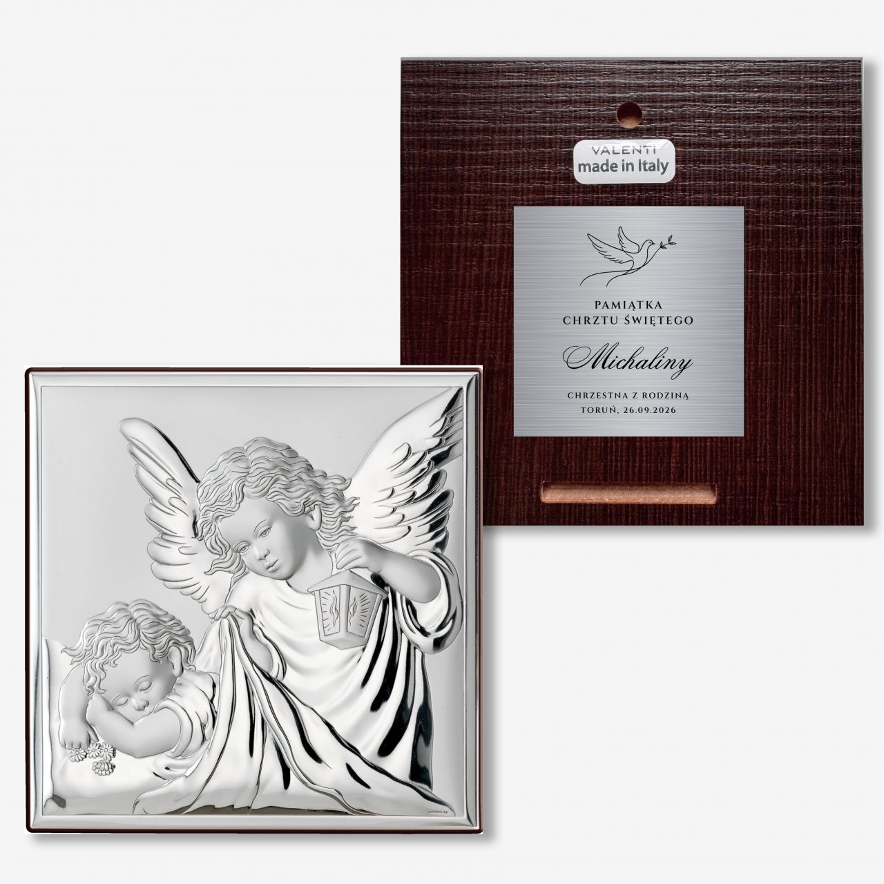 Wyjątkowa pamiątka o głębokim znaczeniu symbolicznym, która doskonale podkreśla wagę uroczystości chrztu. Elegancki obrazek przedstawiający anioła stróża czuwającego nad dzieckiem zachwyca subtelnym wykonaniem i ponadczasową formą. Starannie dobrane detale sprawiają, że całość prezentuje się niezwykle szlachetnie i pasuje do każdego wnętrza. Jeśli szukasz wzruszającego i trwałego upominku, Obrazek pamiątka chrztu ANIOŁ STRÓŻ będzie idealnym wyborem.