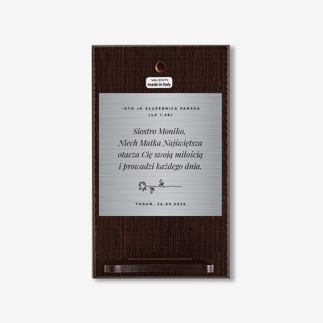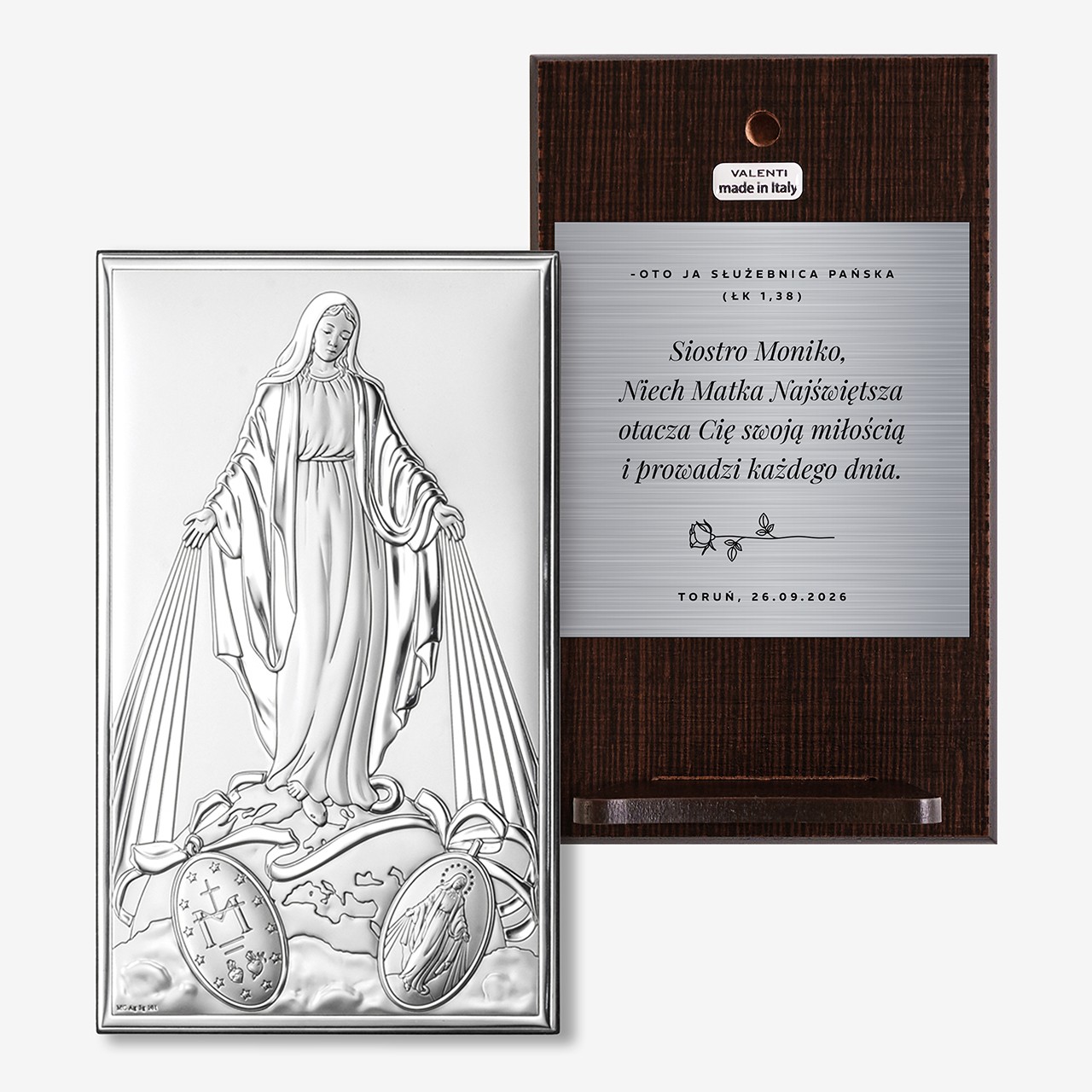 Szukasz wyjątkowego prezentu na chrzest, który będzie jednocześnie elegancki i pełen symboliki? Ten piękny obrazek z motywem Anioła Stróża to wyraz troski, opieki i duchowego wsparcia dla dziecka od pierwszych chwil życia. Srebrne wykończenie w połączeniu z delikatną formą serca nadaje mu subtelnego, wyjątkowego charakteru. Obrazek na chrzest z Aniołem Stróżem TWÓJ TEKST to doskonały sposób, by podarować pamiątkę, która zostanie z dzieckiem na długie lata.