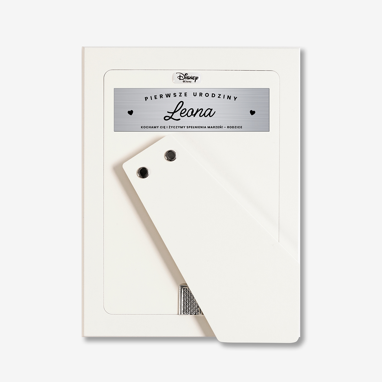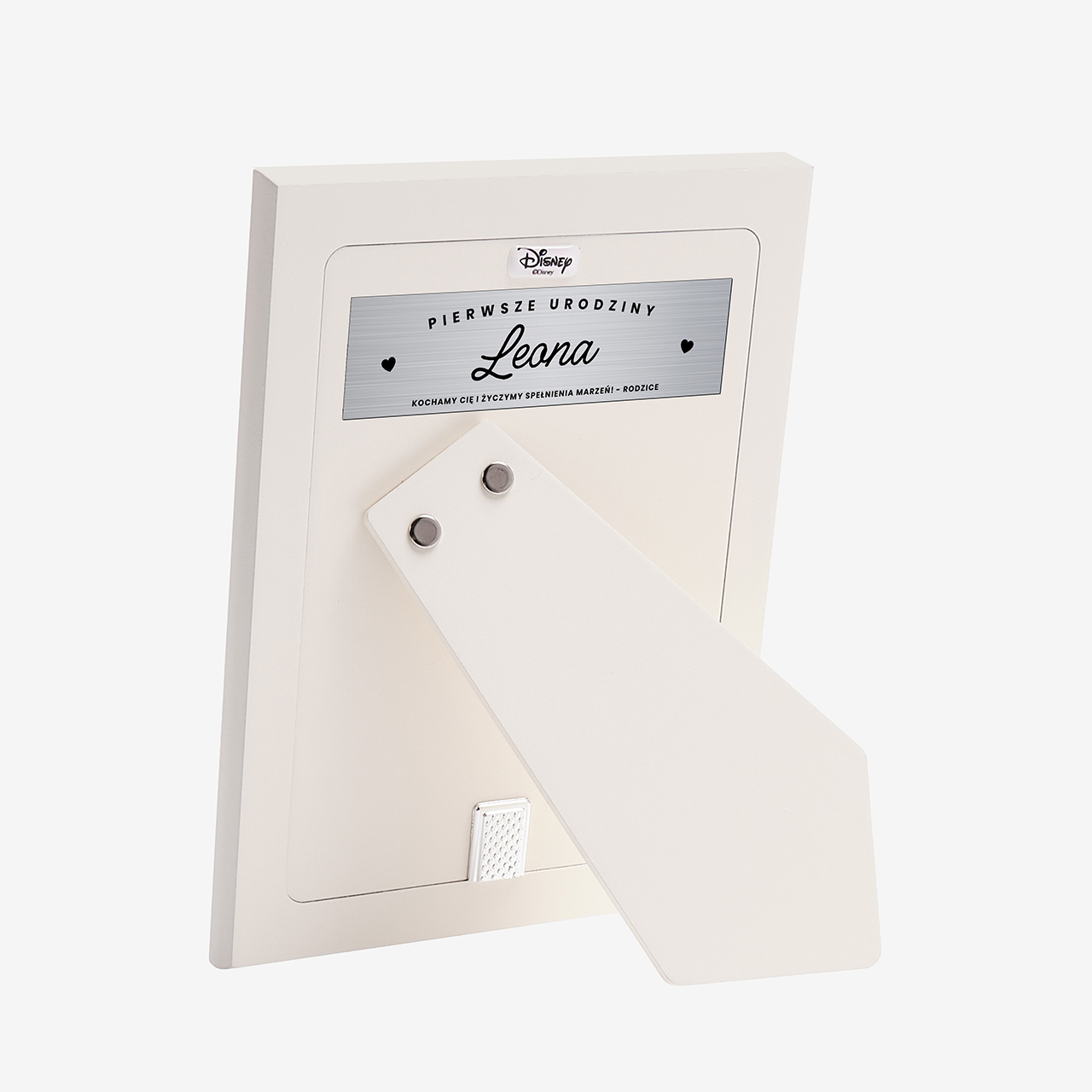 • z tyłu ramki znajduje się aluminiowa tabliczka, na której umieścisz własny tekst w formie wygrawerowanej dedykacji