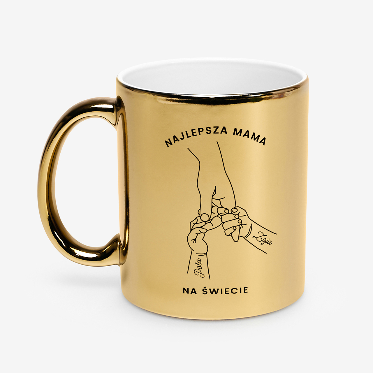 - Elegancki kubek dla mamy ze złotym wykończeniem i modnym nadrukiem