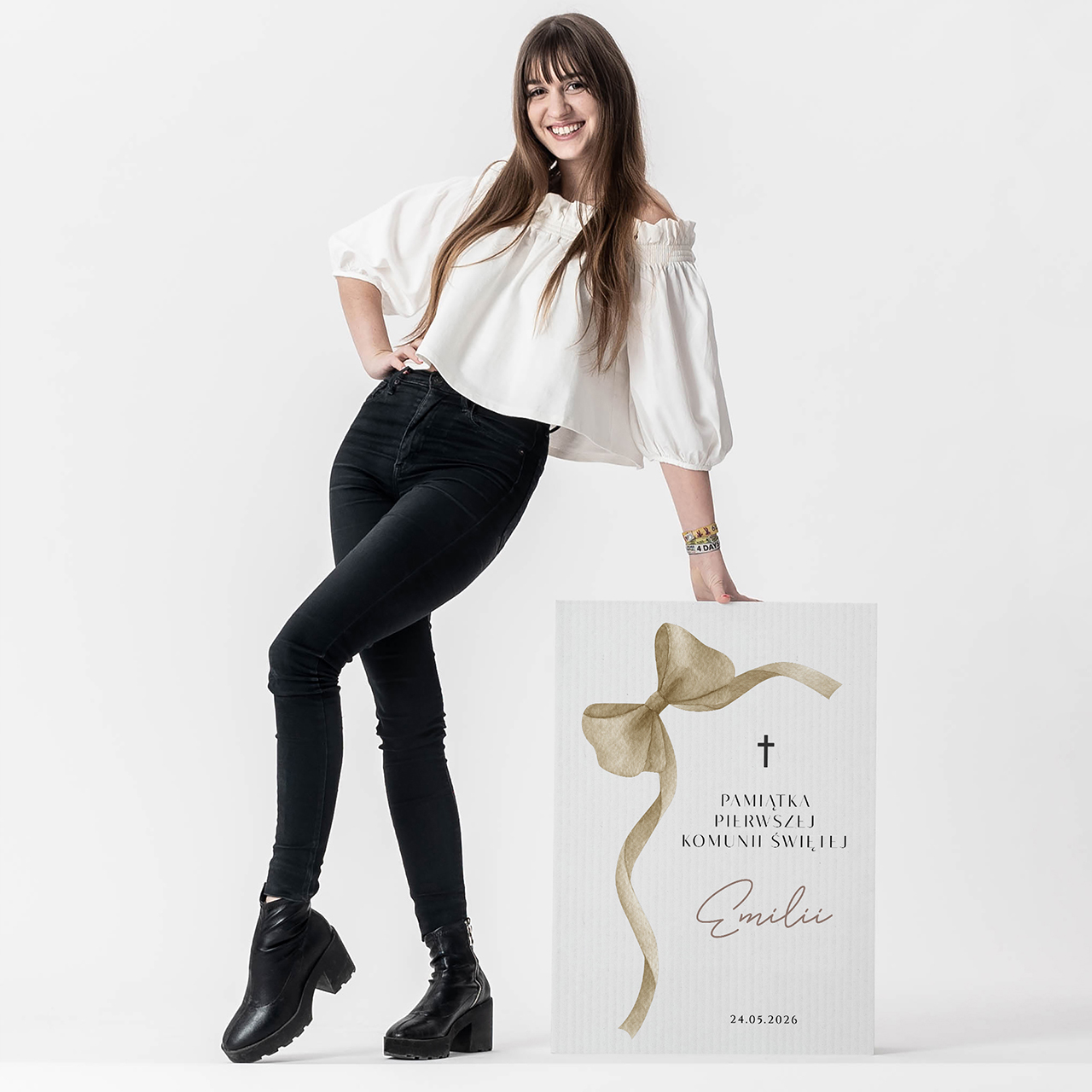 - Efektowny format sprawia, że kartka wyróżnia się wśród pamiątek komunijnych