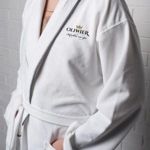 Co jest lepszego niż szlafrok z inicjałami? Dwa szlafroki! Jeżeli więc zdecydujesz się na zakup szlafroka dla damy swego serca, wybierz też drugi szlafrok męski z haftem, do kompletu. Szlafrok męski KING to najlepsza propozycja na szlafrok męski z własnym nadrukiem.